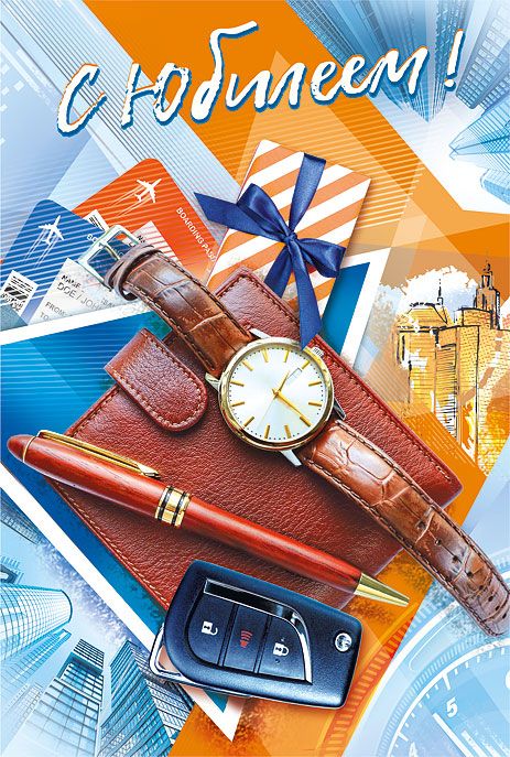 Открытка формата А5 предназначена для оформления поздравлений с юбилеем и ориентирована на мужскую аудиторию, что отражено в деловой тематике иллюстрации: на лицевой стороне размещены изображения часов, кожаного портмоне, ключей от автомобиля, ручки и подарочной коробки на фоне архитектурных и деловых мотивов. Изделие изготовлено из плотного картона, устойчивого к изгибам и истиранию, что важно при транспортировке оптовых партий и при выкладке в торговом зале. Размер готовой открытки 182 × 122 мм обеспечивает совместимость с распространёнными форматами почтовых конвертов и удобство размещения на стандартных витринах, в настольных и настенных торговых дисплеях. Лицевая сторона дополнена декоративной отделкой: блестки в лаке радужные создают умеренный оптический эффект, повышающий заметность товара на полке и при этом не затрудняющий последующее хранение в стопах, так как слой лака равномерный и незначительно увеличивает толщину. Внутри открытки предусмотрен готовый поздравительный текст, согласованный по тематике с юбилейным оформлением, что сокращает время выбора и делает изделие удобным решением для розничного покупателя в ситуациях, когда требуется быстро подготовить формальное или полуформальное поздравление. Плотность картона и качество печати обеспечивают стабильность цвета при длительном хранении на складе и под воздействием рассеянного света в торговых помещениях, без заметного выцветания и деформации. Открытка подходит для использования как самостоятельный носитель поздравления, так и в комплекте с подарком делового характера; выдержанный дизайн делает её уместной для дарения коллегам, руководителям и партнёрам. Конфигурация изделия оптимальна для групповой фасовки и транспортировки в гофрокоробах, открытки не склонны к расслаиванию и заломам по линии сгиба, что снижает процент списаний при оптовых поставках. В упаковке 10 штук, что удобно для формирования базового ассортиментного ряда по юбилейной тематике и планирования закупок под сезонный или календарный спрос.