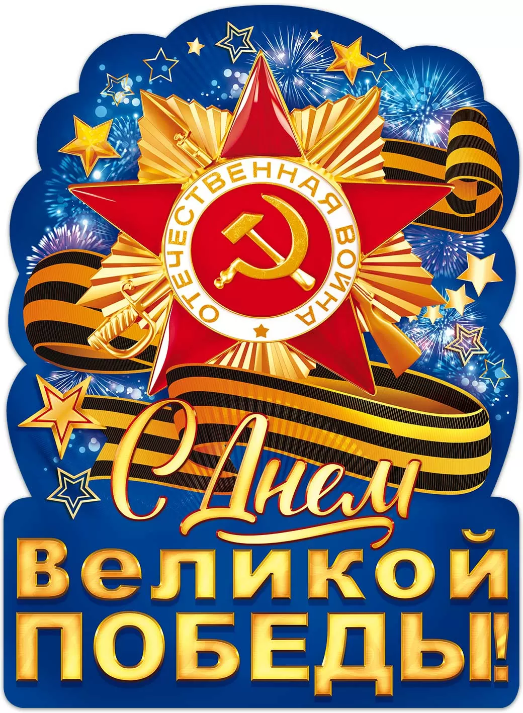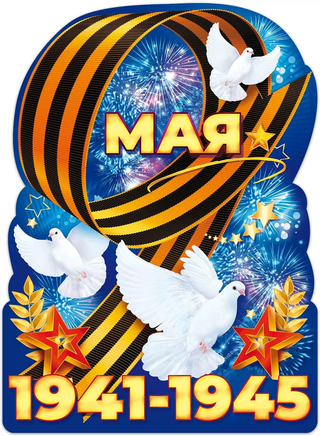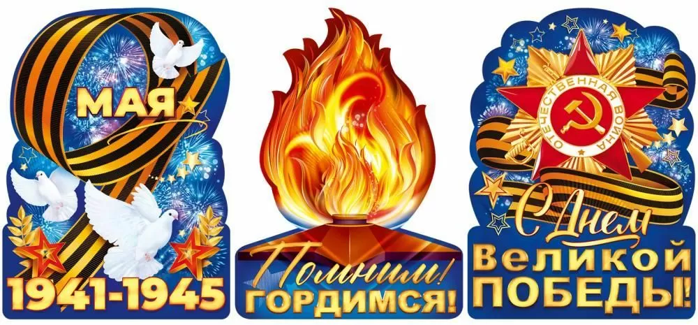 Набор вырубных плакатов «9 Мая» (вечный огонь, орден, георгиевская лента, голуби)