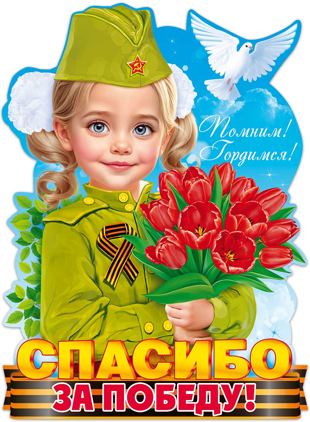 Набор вырубных плакатов «Помним! Гордимся!» (мальчик и девочка в военной форме)