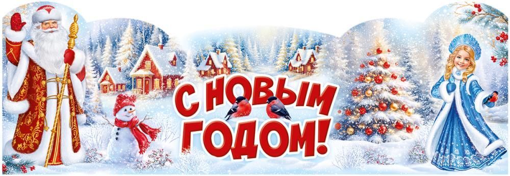 Плакат-полоска новогодней тематики представляет собой горизонтальное декоративное оформление из картона с фигурной вырубкой по контуру изображения. На лицевой стороне расположен полноцветный рисунок с зимним пейзажем, Дедом Морозом, Снегурочкой, елкой и праздничной композицией, что делает изделие готовым решением для оформления помещений к Новому году в торговых залах, офисах, детских учреждениях, на ресепшен и в местах проведения мероприятий. Длина готового изделия 993 мм, ширина 340 мм, что позволяет использовать плакат как самостоятельный акцент над входной зоной, витриной, доской объявлений или сценической декорацией, а также комбинировать его с другими элементами оформления в линейке новогоднего ассортимента. Материал изготовления – картон оптимальной плотности, обеспечивающий достаточную жесткость при небольшой массе, что упрощает транспортировку, хранение и монтаж на различные поверхности с помощью двустороннего скотча, клеевых точек или подвеса. Плакат поставляется в количестве 1 в индивидуальной упаковке, допускающей штабелирование и формирование крупных партий для оптовых поставок без деформации краев и потери товарного вида. Фигурная вырубка подчеркивает контуры персонажей и снежного фона, за счет чего плакат визуально выделяется на стене и может использоваться в витринных композициях, фотозонах и тематическом оформлении залов. Отсутствие дополнительной отделки делает поверхность однородной, не бликующей, удобной для размещения под различным освещением и в витринах с подсветкой. Изделие рассчитано на многократное использование при аккуратном обращении, не требует специальных условий эксплуатации, компактно размещается в плоских коробах или папках формата до 1 м, что удобно для сезонного хранения и централизованных закупок для сетевых магазинов, школ, студий праздника и других организаций.