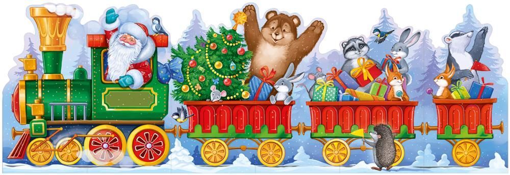 Плакат‑полоска представляет собой горизонтальное новогоднее настенное украшение с фигурной вырубкой по контуру изображения, выполненное из плотного картона. Длина готового изделия составляет 1004 мм, ширина 340 мм, что позволяет закрывать значительную часть стены, витрины или дверного проёма и использовать плакат как центральный элемент новогоднего оформления. Изображение занимает всю площадь плаката и построено в виде праздничного поезда с паровозом, вагончиками, ёлкой, подарками, Дедом Морозом и лесными животными на зимнем фоне; текстовые надписи отсутствуют, поэтому изделие подходит для оформления помещений с любым языковым окружением и не ограничивает сценарии применения. Картонная основа обеспечивает достаточную жёсткость при небольшой массе, что удобно при оптовых поставках, складском хранении и транспортировке: плакат можно упаковывать стопами, не опасаясь деформации при соблюдении базовых условий по влажности. Фигурная вырубка подчёркивает контуры поезда и персонажей, за счёт чего плакат смотрится объёмнее и аккуратнее в витринных композициях, на стендах, в детских учреждениях и торговых залах. Отделка без дополнительных эффектов упрощает комбинирование плаката с другими элементами декора, исключает блики от ламп и витринного освещения и облегчает последующую утилизацию. Изделие рассчитано на настенное размещение с использованием двустороннего скотча, клеевых точек или подвеса на нити; гладкая оборотная сторона позволяет крепить плакат на различные поверхности без дополнительной подготовки. Формат до 1 м удобен для серийного оформления: несколько одинаковых или разных плакатов‑полосок легко выстраиваются в непрерывную декоративную линию по периметру зала, вдоль прикассовой зоны или в витрине. В розничном использовании плакат подходит для украшения дома, детской комнаты, групп в детском саду, школьных классов и кружков, создавая единое новогоднее оформление без необходимости подбора текста под конкретное мероприятие. Количество в упаковке: 1.