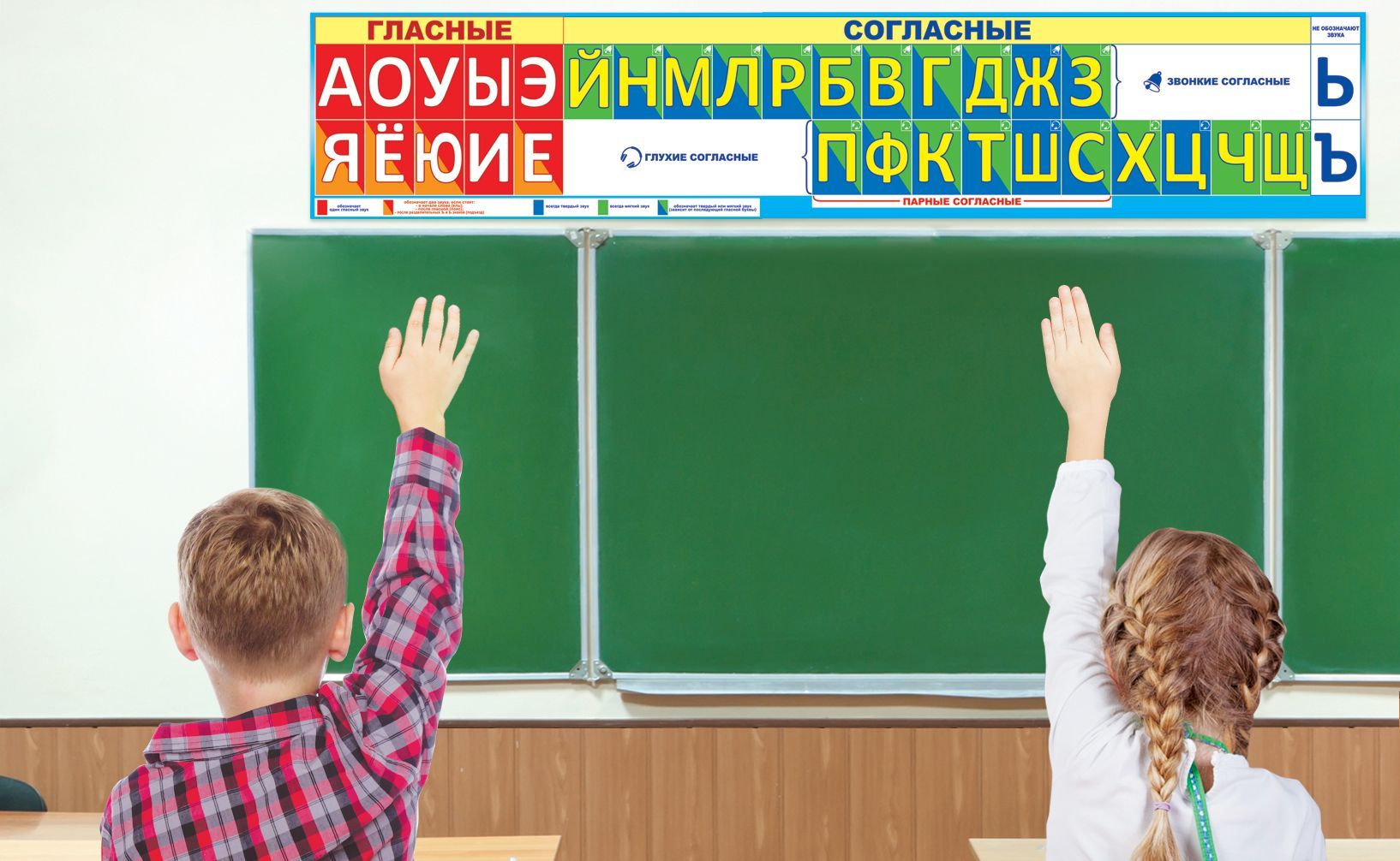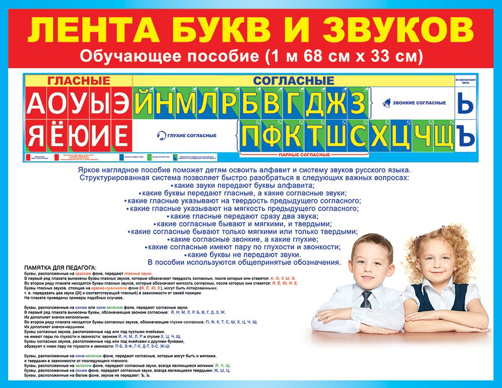 Плакат-полоска «Лента букв и звуков» представляет собой учебное пособие из плотного картона, предназначенное для наглядного освоения алфавита и системы звуков русского языка. Готовое изделие имеет длину 1680 мм и ширину 330 мм, что позволяет размещать его над доской, вдоль стены класса или в зоне индивидуальных занятий, сохраняя хорошую читаемость с расстояния. Картонная основа обеспечивает жесткость и устойчивость к деформации при длительном горизонтальном размещении, удобна для крепления на стену с помощью кнопок, скотча или рейлингов. Поверхность рассчитана на регулярное использование в учебном процессе: структура поля разделяет гласные и согласные, выделяет звонкие и глухие, парные и непарные согласные, а также дает возможность системно демонстрировать соответствие букв и звуков. Информация сгруппирована по блокам с четким цветовым кодированием, что упрощает ориентирование учащихся и снижает нагрузку на педагога при объяснении материала. Плакат-полоска может использоваться в начальной школе, подготовительных группах детских садов, развивающих центрах и при домашнем обучении как постоянный элемент оформления учебного пространства. Формат изделия удобен для транспортировки и складского хранения: полоска сворачивается в рулон, не занимает много места и подходит для формирования оптовых партий, в том числе при централизованных закупках для образовательных учреждений. Отсутствие дополнительной отделки делает поверхность однородной, без бликов, что важно при освещении люминесцентными и светодиодными светильниками. В упаковке 1 штука, что позволяет гибко планировать количество изделий на класс, кабинет или торговую точку и легко комбинировать данный плакат-полоску с другими элементами учебно-наглядного ассортимента.