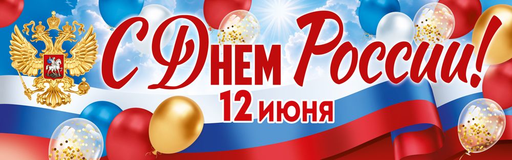 Плакат-полоска «С Днем России!» (Рос. символика, шары)