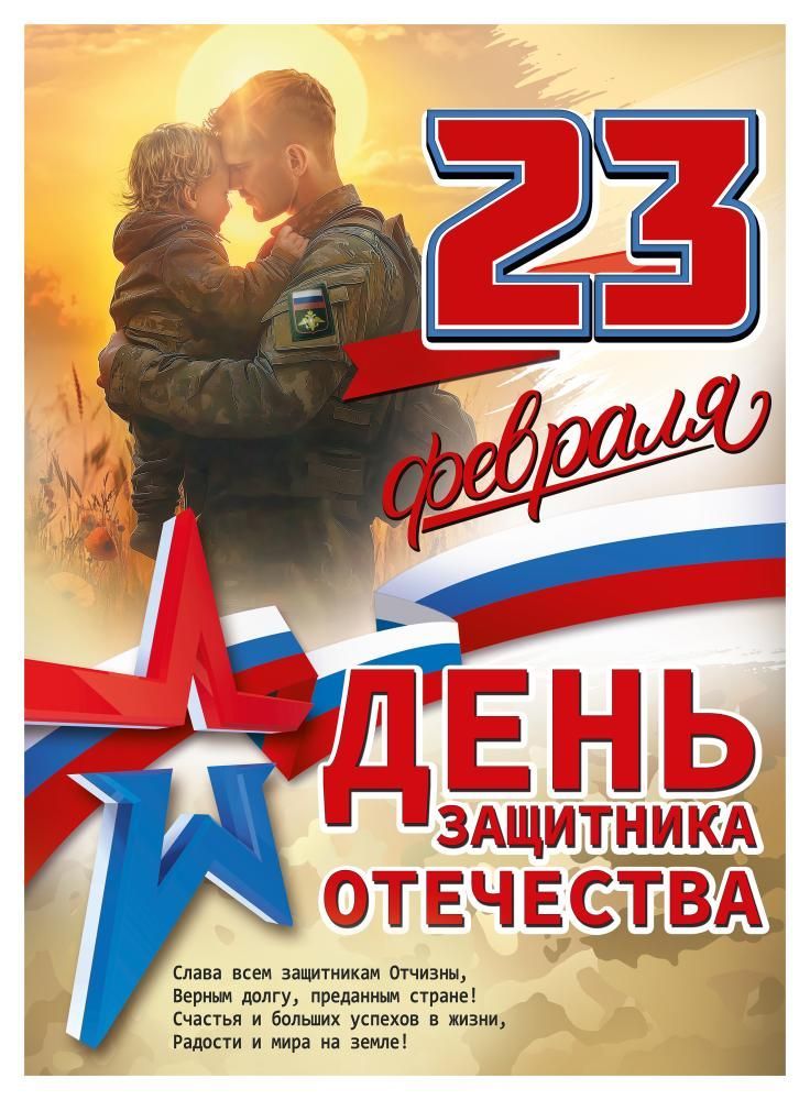 Плакат формата А2 с текстом «23 февраля. День защитника Отечества» предназначен для оформления помещений к государственному празднику и организации тематических мероприятий в учреждениях, торговых залах, офисах и учебных организациях. Изделие изготовлено из плотного картона, что обеспечивает достаточную жесткость полотна, устойчивость к деформации при вертикальном размещении и возможность многократного использования в течение нескольких сезонов при аккуратном обращении. Размер готового изделия 600 × 440 мм позволяет разместить плакат на стандартных стендах, дверях, витринах и информационных досках без дополнительной подрезки. Поверхность без отделки удобна для эксплуатации в местах с ярким освещением, так как не дает бликов и обеспечивает хорошую читаемость текста под разными углами обзора. Композиция включает крупную надпись с указанием даты, поздравительный текст и изображение военнослужащего с ребенком на фоне заката и элементов в цветах российского флага, что делает плакат уместным для оформления торжественных собраний, классных часов, патриотических выставок, корпоративных поздравлений сотрудников и клиентов. Для розничного использования изделие подходит для декора дома, школьного класса, кружка или небольшого офиса, легко крепится на стену с помощью кнопок, клея или двустороннего скотча без значительного утяжеления поверхности. Плотный картон хорошо переносит транспортировку пачками, не расслаивается и не рвется при стандартных нагрузках, что важно при оптовых поставках и хранении на складе. Оптимальный формат и нейтральная поздравительная тематика позволяют включать данный плакат в ассортимент сезонной праздничной продукции, формировать наборы ко Дню защитника Отечества и использовать его как самостоятельный элемент оформления или в сочетании с другими декоративными материалами. Количество в упаковке 10.