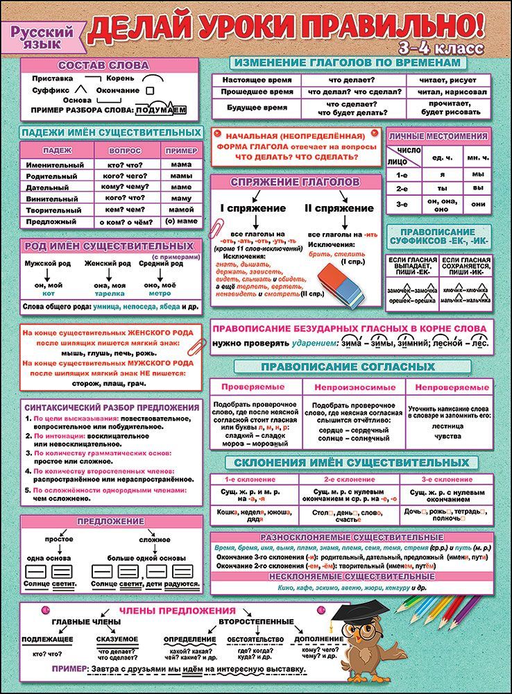 Плакат «Делай уроки правильно Русский язык (3-4 класс)»