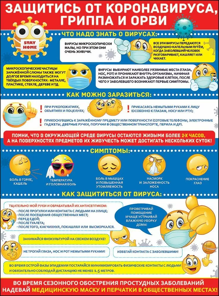 Плакат "Защитись от коронавируса, гриппа и ОРВи" - наглядно рассказывает и показывает основные правила защиты от всевозможных простудных заболеваний. Яркие иллюстрации привлекают внимание с первого взгляда, а емкие правила позволяют запомнить их практически сразу. Незаменимый атрибут в образовательных учреждениях, а также поликлиниках, транспорте или дома.