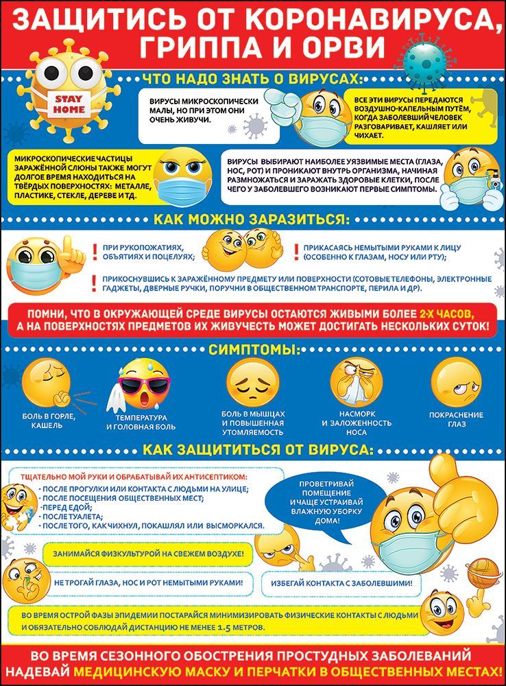 Плакат формата А2 изготовлен из плотного картона и предназначен для наглядного информирования о мерах защиты от коронавируса, гриппа и ОРВИ. Размер готового изделия составляет 596 × 440 мм, что обеспечивает хорошую читаемость текста и иллюстраций с расстояния, удобного для размещения в проходных зонах. Материал обладает достаточной жесткостью для настенного крепления без дополнительного основания и устойчив к деформации при повседневной эксплуатации в местах с интенсивным потоком людей. Информационный блок структурирован по разделам: краткие сведения о вирусах, основные пути заражения, характерные симптомы и рекомендации по защите, включая правила гигиены рук, особенности поведения в общественных местах и напоминание о социальной дистанции. Текст выполнен крупным шрифтом с использованием цветового выделения ключевых фраз, что облегчает восприятие информации разновозрастной аудиторией и снижает время на ознакомление. Иллюстративные элементы в виде понятных пиктограмм и персонажей помогают быстро соотнести текст с конкретным действием, что важно при размещении в учреждениях с высокой посещаемостью. Плакат может применяться в медицинских организациях, образовательных учреждениях, офисных и производственных помещениях, торговых залах, на объектах сервиса и транспорта, а также в жилых домах и подъездах. Для оптовых закупок изделие удобно при хранении и транспортировке за счет плоской формы и стабильных размеров; в упаковке 10. Картонная основа допускает крепление на стены и информационные стенды с помощью двустороннего скотча, кнопок или рейлинговых систем без риска повреждения структуры. Отсутствие дополнительной отделки делает поверхность матовой, без бликов, что обеспечивает хорошую читаемость при ярком искусственном и естественном освещении и позволяет использовать плакат в различных интерьерах и условиях эксплуатации.