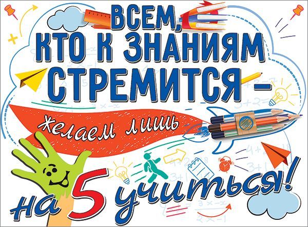 Плакат формата А2 из плотного картона предназначен для оформления учебных пространств и проведения школьных мероприятий, связанных с началом учебного года, подведением итогов, классными часами и тематическими праздниками. Размер готового изделия составляет 596 × 440 мм, что обеспечивает хорошую читаемость текста и заметность плаката в помещении при размещении на двери кабинета, стенде, доске объявлений или над школьной доской. На лицевой стороне выполнена полноцветная печать с яркой учебной тематикой: композиция с карандашами, ракетой, облаками, графическими символами и крупной надписью «Всем, кто к знаниям стремится – желаем лишь на 5 учиться!», ориентированной на мотивацию школьников и создание позитивной атмосферы в классе. Картонная основа обеспечивает достаточную жесткость, устойчивость к деформации и удобство монтажа на вертикальные поверхности с помощью кнопок, двустороннего скотча или подвеса; изделие сохраняет форму при многократном использовании, что важно для учебных заведений, закупающих декор на несколько учебных лет. Отсутствие дополнительной отделки делает поверхность матовой, без бликов от освещения, благодаря чему информация хорошо читается под разными углами обзора и при ярком свете. Плакат удобен для транспортировки и складского хранения: листовой формат позволяет укладывать изделия стопой, не занимая много места, а стандартные габариты подходят под типовые стеллажи и коробки. В упаковке 10, что оптимально для оптовых поставок в школы, детские центры, кружки и магазины канцтоваров, формирующие ассортимент сезонных товаров к 1 сентября и другим учебным датам. В розничном использовании плакат подходит для украшения детской комнаты, домашнего учебного уголка или небольших учебных студий, подчеркивая тему обучения и стимулируя интерес ребенка к занятиям.