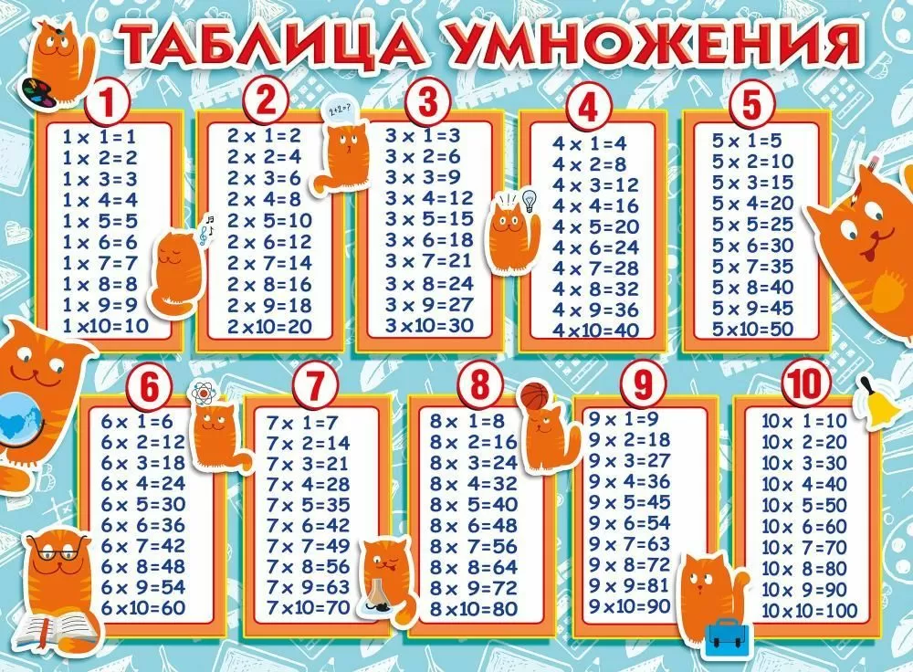 Плакат «Таблица умножения (Котики)»