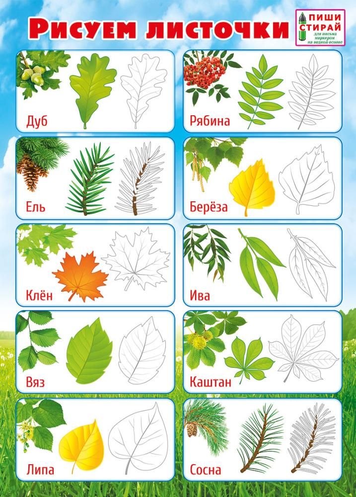Мини-плакат «Рисуем листочки» (Пиши-стирай)