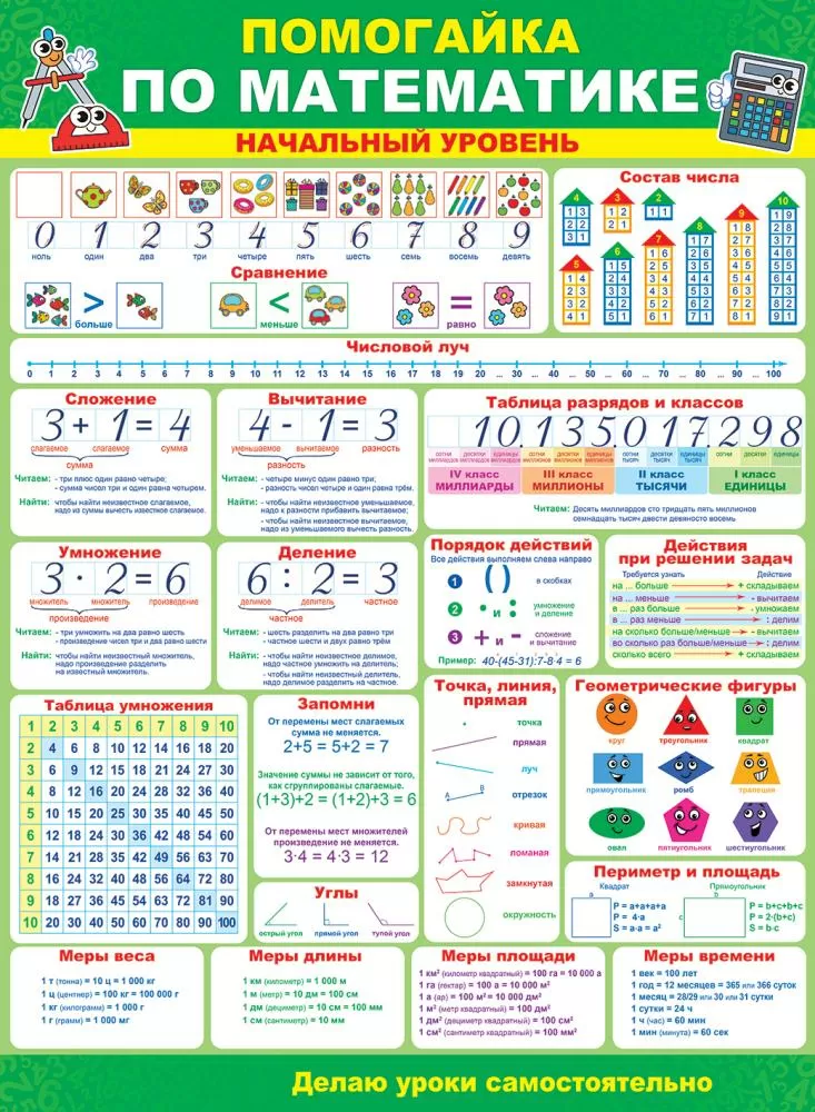 А что вообще такое «Помогайка»? Это целая серия плакатов начального и продвинутого уровней с основными правилами по разным предметам. Они помогут учиться и самостоятельного выполнять домашние задания. Переходите в каталог и познакомьтесь с другими плакатами серии. Соберите всю коллекцию!