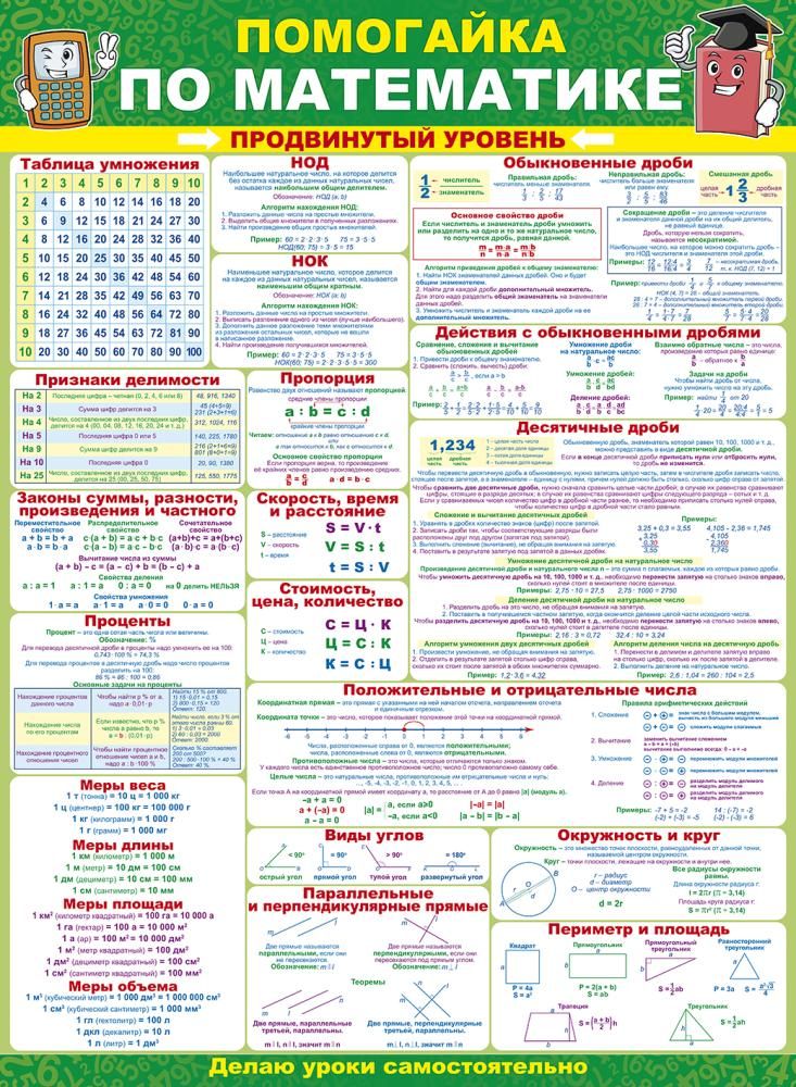 Плакат «Помогайка по математике. Продвинутый уровень»