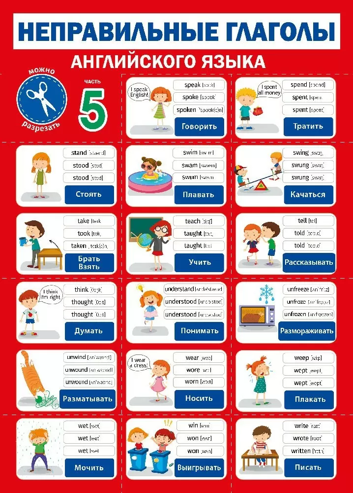 Плакат «Английский язык - Неправильные глаголы -5»