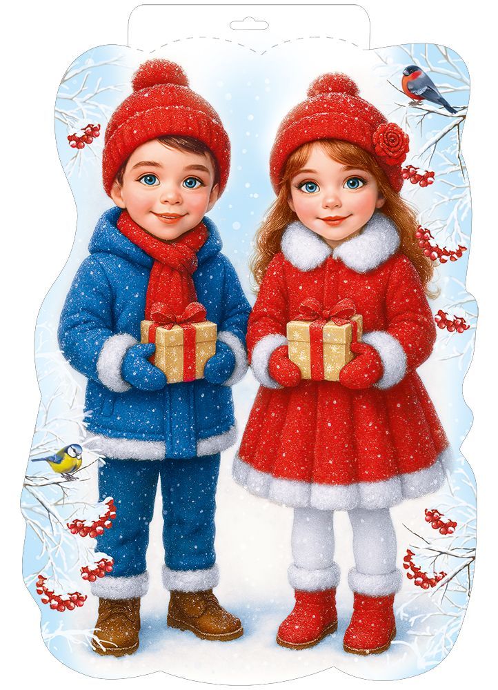 Вырубной плакат формата А3 предназначен для сезонного оформления торговых залов, витрин, офисов, образовательных и детских учреждений, а также для использования в домашнем интерьере в период новогодних и зимних праздников. Изделие выполнено из плотного картона с двусторонним полноцветным изображением: композиция с детьми в зимней одежде и подарками хорошо читается как с близкого, так и со среднего расстояния, что удобно при размещении на дверях, стенах, стеклянных перегородках и в витринных зонах. Фигурная вырубка по контуру изображения придаёт плакату законченный декоративный вид и позволяет использовать его как самостоятельный элемент оформления без дополнительного паспарту или рамок. Глянцевый УФ-лак нанесён на лицевую поверхность, защищает печать от истирания, выгорания и кратковременного воздействия влаги, что повышает срок службы изделия при интенсивной эксплуатации в местах с высокой проходимостью. Размер готового плаката составляет 440 × 296 мм, что обеспечивает удобство при транспортировке, хранении и выкладке: формат легко размещается в стандартных коробах и стеллажах, не требует сложной упаковки и подходит для серийного декорирования пространства. Отсутствие текста внутри делает плакат универсальным по тематике и языку, его можно комбинировать с другими элементами новогоднего ассортимента, использовать в разных сценариях — от оформления акционных зон до создания фотозон и детских игровых пространств. В упаковке 10 штук, что оптимально для планирования оптовых закупок, равномерного распределения по торговым точкам и формирования комплектов для оформления помещений разной площади.