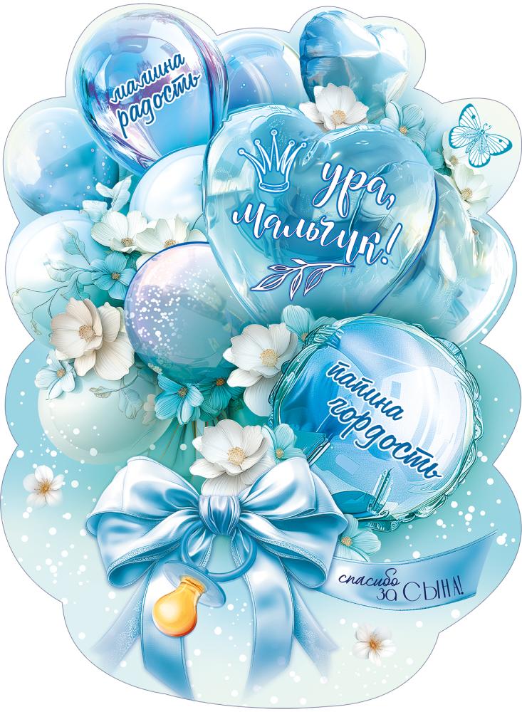 Вырубной плакат формата А2 представляет собой фигурное декоративное изделие из плотного картона, предназначенное для оформления помещений к рождению мальчика. Плакат выполнен в виде композиции из воздушных шаров, цветов и декоративного банта в голубой гамме, с акцентом на надписях, связанных с появлением сына, что позволяет использовать его как самостоятельный элемент декора без дополнительного текстового сопровождения. Фигурная вырубка по контуру изображения обеспечивает аккуратный край и придает изделию законченный вид, что важно при оформлении витрин, фотозон, reception-зон в роддомах, детских магазинах и студиях декора. Размер готового изделия 596 × 440 мм обеспечивает хорошую читаемость композиции на расстоянии и удобен для размещения на дверях, стенах, ширмах, стойках и других вертикальных поверхностях стандартных размеров. Картонная основа сохраняет форму при вертикальной установке, позволяет крепить плакат на двусторонний скотч, клеевые точки, подвесы или нити, а также использовать в составе сложных декоративных инсталляций. Материал оптимален для краткосрочного и среднесрочного использования в помещениях, устойчив к обычным условиям эксплуатации при бережном обращении, не требует специального ухода и легко утилизируется после мероприятия. Плотность и структура картона удобны для транспортировки и складского хранения: плакаты укладываются ровной стопой, не деформируются при стандартной упаковке и перевозке, что снижает риск брака в оптовых партиях. В упаковке 10 одинаковых изделий, что упрощает планирование закупок для торговых точек и декораторских студий, позволяет формировать однородные серии оформления для нескольких залов или мероприятий. Плакат может использоваться как единичный акцент в интерьере или в составе тематических наборов к выписке из роддома, семейной фотосессии, домашнего праздника, оформления детского уголка или витрины с товарами для новорождённых.