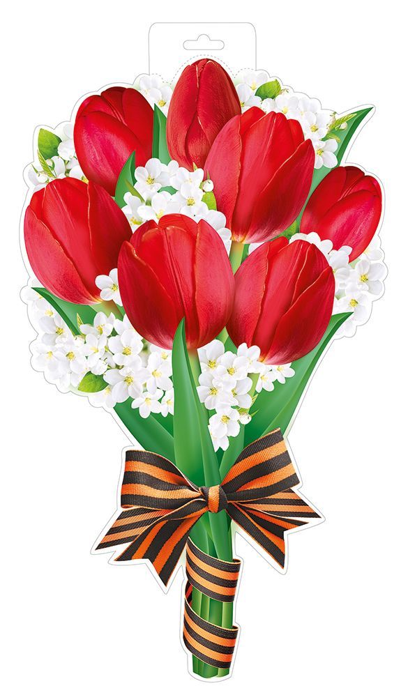 Плакат «Красные тюльпаны с георгиевской лентой»