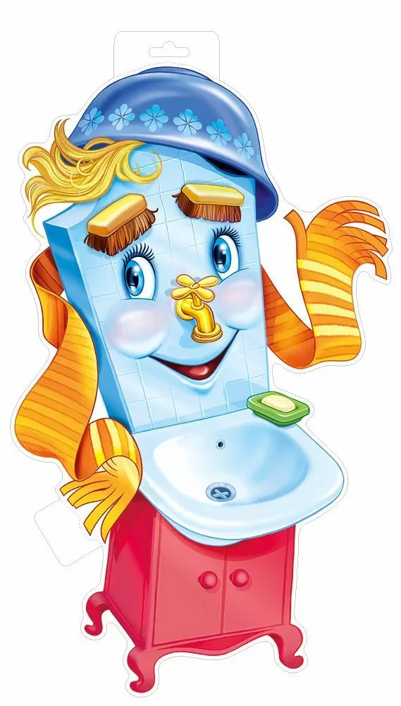 Вырубной плакат с изображением Мойдодыра из сказки Чуковского украсит группу детского сада, поможет разграничить помещение и напомнит малышам о важности водных процедур.
