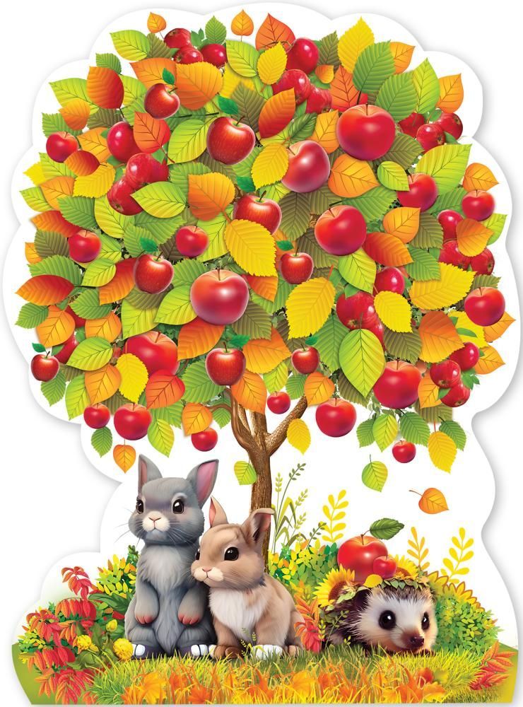 Вырубной плакат формата А2 представляет собой фигурное полноцветное изделие из плотного картона с контурной вырубкой по силуэту осеннего дерева с яблоками и лесными животными. Размер готового изделия 596 × 444 мм обеспечивает хорошую читаемость изображения в помещении среднего и большого формата, что удобно при оформлении классов, групп детских садов, игровых комнат, библиотек, развивающих центров и торговых залов. Картонная основа обладает достаточной жёсткостью, за счёт чего плакат сохраняет форму при вертикальном размещении на стене, двери, ширме или стенде и не деформируется при аккуратной транспортировке в упаковке. Поверхность рассчитана на стандартные условия эксплуатации в помещениях: плакат можно крепить на двусторонний скотч, клеевые подушечки, кнопки или подвешивать за край, не нарушая целостности изображения. Отсутствие текста внутри делает оформление универсальным: изделие подходит для тематических экспозиций про осень, природу, урожай, для сезонного декора витрин и фотозон, а также как наглядный материал при проведении занятий с детьми. Фигурная форма подчёркивает сюжет, визуально отделяя плакат от фона и позволяя использовать его как центральный элемент композиции или комбинировать с другими плоскими и объёмными элементами декора. Изображение с ярко прорисованными листьями, яблоками и персонажами остаётся информативным на расстоянии, что важно при размещении в просторных помещениях. В одной упаковке 10, что удобно для оптовых закупок в сети образовательных учреждений, магазинов или при комплексном оформлении нескольких локаций: единый дизайн легко тиражировать по разным помещениям, обеспечивая визуальное единство и упрощая планирование ассортимента сезонного декора.