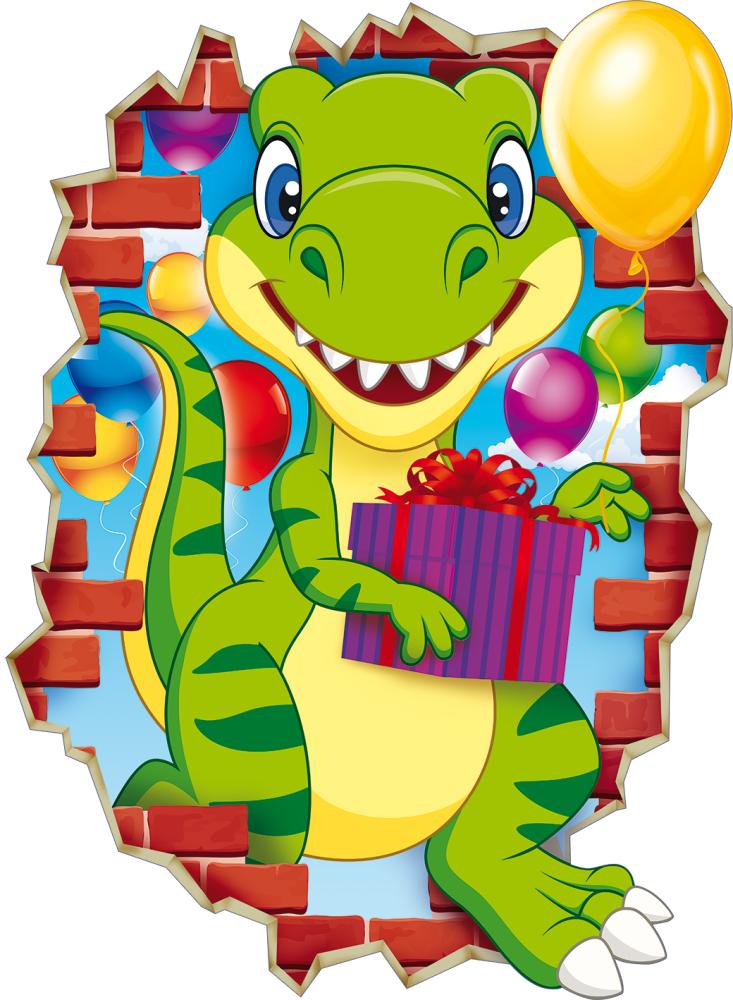 Вырубной плакат формата А2 представляет собой фигурное красочное изделие из плотного картона с изображением персонажа‑динозавра, выходящего сквозь кирпичную стену на фоне воздушных шаров и подарочной коробки. Габариты готового изделия составляют 600 × 440 мм, что обеспечивает хорошую читаемость изображения в помещении среднего и большого размера и позволяет использовать плакат как центральный элемент оформления. Фигурная вырубка по контуру рисунка создает выразственный силуэт без лишних полей, за счет чего изделие удобно комбинировать с другими элементами декора на витринах, стендах и в интерьерных композициях. Картонная основа обладает достаточной жесткостью для вертикального размещения на стенах, дверях, перегородках и любых ровных поверхностях, при этом плакат сохраняет форму при кратковременных изгибах и транспортировке. Отсутствие текста внутри делает изображение универсальным для детских праздников, дней рождения, тематических мероприятий в детских садах, школах, развлекательных центрах и магазинах детских товаров, а также упрощает интеграцию плаката в существующие фирменные концепции оформления. Поверхность рассчитана на стандартные условия эксплуатации в помещениях: изделие выдерживает многократное использование при аккуратном обращении, может храниться в стопке без деформации рисунка. Размер и пропорции плаката удобны для размещения в стандартных транспортных коробах и на стеллажах, что важно при оптовых поставках и складском хранении. В одной упаковке поставляется 10 изделий, что позволяет формировать серии однотипного оформления зала или зонировать пространство, сохраняя единый визуальный стиль. Плакат подходит для разового и сезонного декорирования, может использоваться как самостоятельный элемент или в составе комплексного решения с гирляндами, шариками и другими плоскими декоративными материалами.
