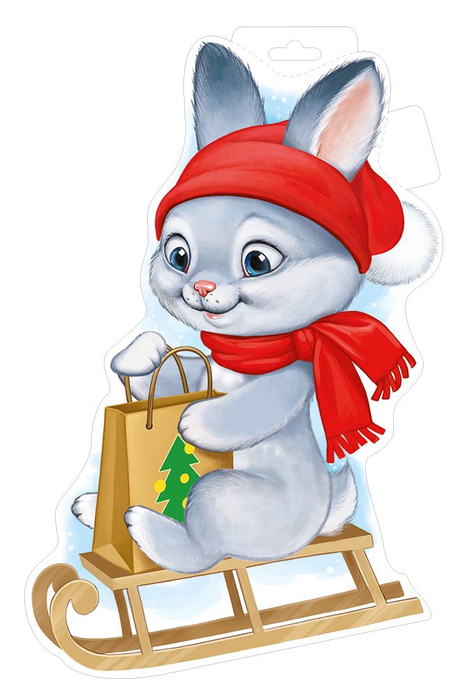 Вырубной плакат формата А4 выполнен из плотного картона и представляет собой фигурное изображение зимнего зайца на санках с подарочным пакетом, что делает изделие актуальным для новогоднего и зимнего оформления. Фигурная вырубка по контуру рисунка обеспечивает аккуратный внешний вид и позволяет использовать плакат как самостоятельный декоративный элемент без дополнительного подложечного фона. Длина готового изделия 334 мм, ширина 234 мм, что удобно для комбинирования с другими элементами декора на витринах, стендах, дверях и в интерьерах небольших помещений. Двустороннее изображение обеспечивает одинаковую визуальную выразительность с обеих сторон, благодаря чему плакат подходит для подвесного размещения в проходных зонах, на стеклянных перегородках и витринах, где важна читаемость композиции под разными углами обзора. Материал подобран с учетом серийного использования: картон сохраняет форму, устойчив к небольшим деформациям и не требует сложных условий хранения, что удобно при закупке и складировании сезонного ассортимента. Плакат поставляется по 10 штук, что позволяет формировать равномерное оформление сети торговых точек, группировать изделия по залам или использовать их для комплексного декора детских учреждений, офисов и точек розничной торговли. Отсутствие текста внутри делает плакат универсальным для различных сценариев применения: он может использоваться как нейтральный фон для выкладки подарочной продукции, оформления детских мероприятий, фотозон и кассовых зон, а также сочетаться с любыми тематическими надписями, ценниками и указателями. Конструкция предусматривает верхнюю часть, удобную для подвеса на стандартные крючки и держатели, что ускоряет монтаж и демонтаж при частой смене оформления. Изделие рассчитано на многократное использование в течение сезона при бережном обращении, не требует специальных аксессуаров для установки и совместимо с большинством распространенных способов крепления к плоским и прозрачным поверхностям.