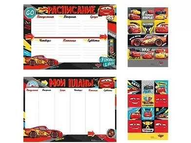 Канцелярский набор от Disney ( Дисней ) с любимыми героями содержит в себе планер на неделю, расписание для уроков и наклейки, которые можно использовать учителям или родителям в качестве наклейки-оценки. Такой набор подойдет детям, которые ходят в детский сад или школу.