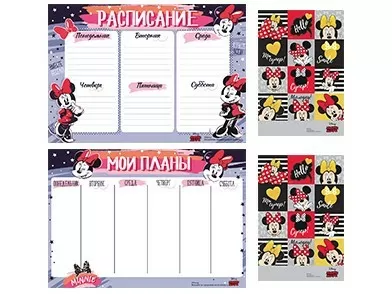 Канцелярский набор от Disney ( Дисней ) с любимыми героями содержит в себе планер на неделю, расписание для уроков и наклейки, которые можно использовать учителям или родителям в качестве наклейки-оценки. Такой набор подойдет детям, которые ходят в детский сад или школу.