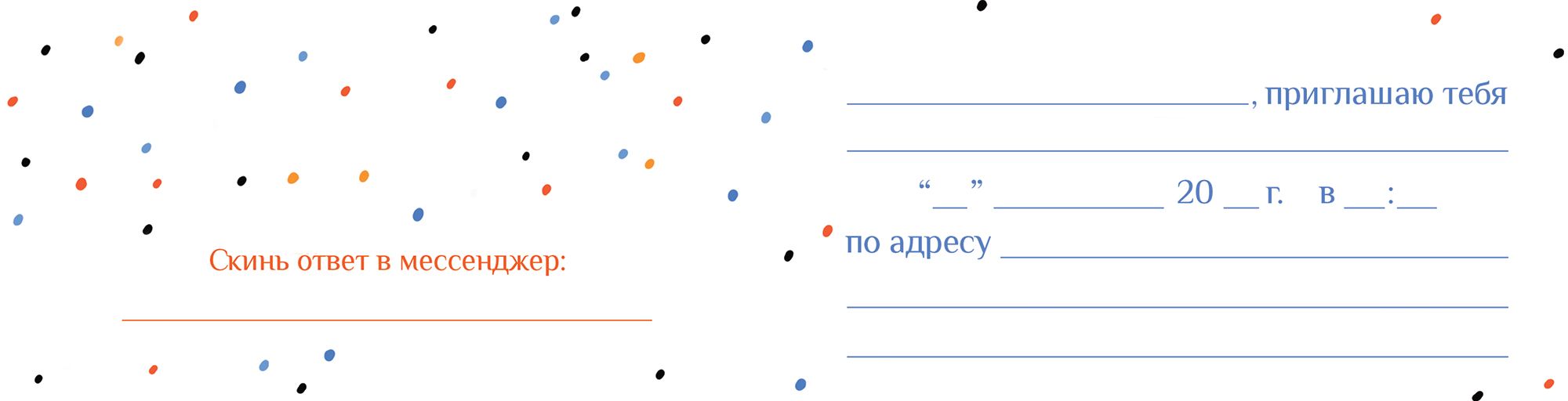 Яркое креативное приглашение поможет организовать праздничное мероприятие. Такая небольшая деталь сделает событие более торжественным и официальным. Пригласительное имеет прямоугольную форму и двойное сложение. Материал – плотный картон. Сверху нанесено красочное изображение, декорированное сияющей фольгой. Размеры в сложенном виде — 126х64 мм. Внутри есть разлиновка, а также шаблон для указания времени и места проведения мероприятия. Купить приглашения оптом можно на нашем сайте. Количество экземпляров в одной упаковке — 20 штук.