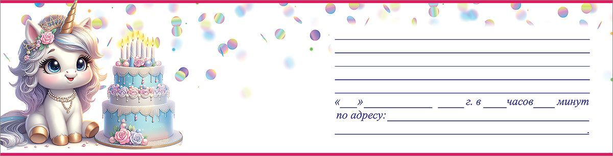 Приглашение на день рождения формата А6 изготовлено из плотного картона, что обеспечивает устойчивость к сгибам и истиранию при транспортировке и раздаче гостям. Готовое изделие имеет длину 126 мм и ширину 64 мм, размеры стабильны в партии и удобны для упаковки в стандартные конверты и коробки, что важно при оптовых поставках и складском хранении. Лицевая сторона оформлена полноцветной печатью с изображением праздничного торта, подарков и персонажа единорога, ориентирована на детские дни рождения и тематические мероприятия. Поверхность дополнительно защищена глянцевым УФ-лаком: покрытие повышает износостойкость, устойчивость к выцветанию и загрязнениям, облегчает протирание от случайных следов и сохраняет читаемость надписей при активной эксплуатации в местах с высокой проходимостью. Обратная сторона содержит структурированную текстовую подсказку для заполнения основных данных о событии, что сокращает время подготовки и снижает риск ошибок при ручном внесении информации. Конструкция приглашения плоская, без дополнительных элементов, что упрощает автоматизированный и ручной пересчет, фасовку и транспортировку крупными партиями. В упаковке 20 единиц, формат удобен для формирования ассортимента в розничной выкладке и для комплектования серийных детских праздников, когда требуется единый стиль оформления. Изделие подходит для использования в кафе, студиях детских праздников, школах, кружках и домашней подготовке торжества, легко комбинируется с декором в пастельной и яркой цветовой гамме, может применяться как базовая позиция в линейке товаров для дня рождения.