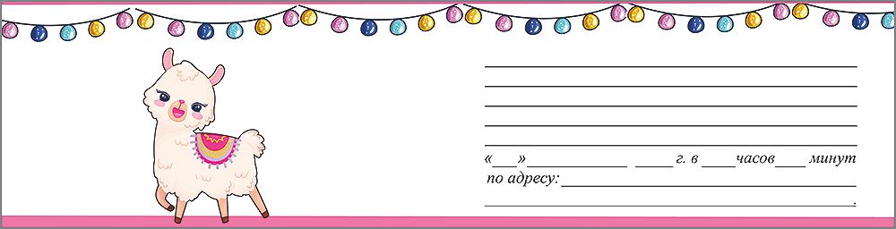 Приглашение формата А6 предназначено для оформления детских дней рождения и массовых мероприятий с тематикой лам и праздничного декора. Изделие изготовлено из плотного картона, что обеспечивает стабильную форму, устойчивость к изгибам и сохранение внешнего вида при транспортировке и хранении в коробах или стеллажных системах. Прямоугольное приглашение размером 126 × 64 мм удобно размещается в стандартных конвертах соответствующего формата и не требует дополнительных подложек. Лицевая сторона оформлена полноцветной печатью с изображением двух лам на голубом фоне, декоративной гирляндой и надписью «Приглашение на день рождения», что позволяет использовать изделие без дополнительного оформления и делает его понятным по назначению сразу при получении. Внутри предусмотрен текст-подсказ для заполнения основных данных о мероприятии: имени именинника, дате, времени и месте проведения, контактах для связи, что сокращает время подготовки к празднику и снижает риск ошибок при ручном внесении информации персоналом. Поверхность картона адаптирована под письмо шариковой или гелевой ручкой, не размазывается и не просвечивает при двустороннем заполнении. Отделка без дополнительных эффектов упрощает учет, уменьшает риск повреждений при штабелировании и делает товар универсальным для сочетания с любыми конвертами и сопутствующей праздничной продукцией. Компактный размер удобен для розничной выкладки на крючках и полках, а также для фасовки крупными партиями на складских паллетах. В упаковке 20 штук, что оптимально для планирования закупок для магазинов, праздничных агентств, детских центров и организаторов мероприятий с повторяющимся сценарием. Однотипный дизайн в каждой упаковке облегчает формирование единого стиля праздника и упрощает контроль остатков по артикулу.