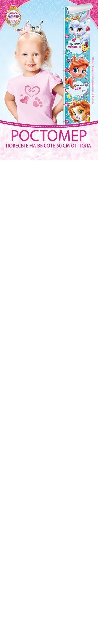 Ростомер формата А0 выполнен из плотного картона с фигурной вырубкой по контуру иллюстраций, что обеспечивает аккуратный внешний вид и удобство размещения в детских помещениях. Готовое изделие имеет длину 993 мм и ширину 150 мм, что позволяет фиксировать рост ребёнка в диапазоне от 60 до 150 см с чёткой градацией по сантиметрам. Печатное поле оформлено полноцветными изображениями сказочных животных и содержит текст и подсказки внутри шкалы, что делает ростомер одновременно измерительным и развивающим элементом интерьера. Картонная основа рассчитана на настенное крепление с опорой на вертикальную поверхность; оптимальна установка на двери, шкафах, стенах в детских садах, школах раннего развития, кабинетах педиатров, а также в домашних детских комнатах. Материал подобран с учётом серийных оптовых поставок: ростомер лёгкий по весу, не создаёт дополнительной нагрузки на крепёж, удобен при хранении в горизонтальных или вертикальных стеллажах, не требует специальных условий транспортировки и хорошо помещается в стандартные упаковочные короба. Печать устойчива к выцветанию при обычном комнатном освещении, поверхность допускает аккуратную сухую чистку от пыли. Конструкция ростомера позволяет использовать его как самостоятельное изделие в розничном сегменте и как часть комплексного ассортимента детских товаров в оптовых закупках: он подходит для оформления тематических зон, подарочных наборов, программ лояльности и сезонных предложений. В упаковке 1.