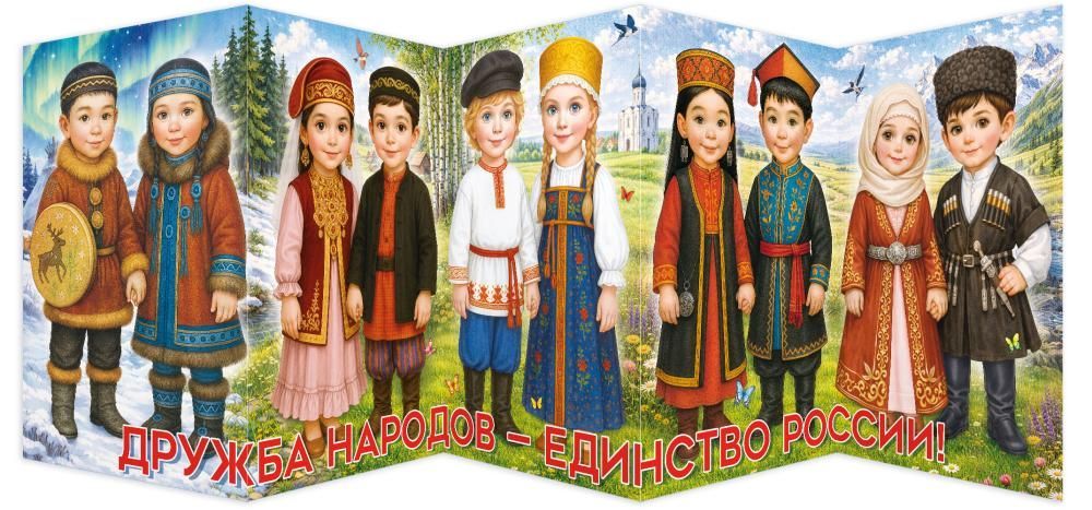 Стенд-гармошка «Дружба народов» (дети в национальных костюмах на фоне природы)