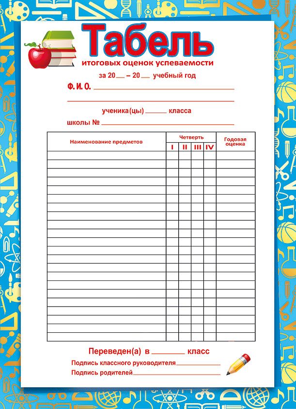 Табель успеваемости формата А5 предназначен для фиксации итоговых оценок учащихся в образовательных организациях и рассчитан на массовое использование в школах, гимназиях и других учебных заведениях. Изделие выполнено из плотного картона, что обеспечивает достаточную жесткость при заполнении, устойчивость к износу в течение учебного года и сохранность записей при частом обращении. Готовый размер табеля составляет 216 × 155 мм, что позволяет удобно хранить его в ученических папках, журналах или стандартных архивных коробках, а также формировать аккуратные стопки при выдаче и сдаче в канцелярию. Лицевая сторона содержит структурированную таблицу для внесения наименований предметов, оценок по четвертям и годовой отметки, а также поля для указания учебного года, фамилии и имени ученика, номера школы, класса и информации о переводе в следующий класс; предусмотрены строки для подписей классного руководителя и родителей. Макет оформлен в яркой, но функциональной школьной тематике: цветная рамка с учебными символами визуально выделяет табель среди других документов и облегчает поиск в стопке бумаг, при этом основное поле под записи выполнено на светлом фоне для хорошей читаемости рукописного текста. Внутренняя сторона не содержит печатного текста и может использоваться для дополнительных пометок администрации или хранения служебных записей. Плотный картон снижает риск деформации при транспортировке и хранении крупными партиями, табели удобно упаковывать и перемещать между складом, типографией и учебными учреждениями. Упаковка рассчитана на 10 штук, что упрощает планирование закупок по количеству классов и учащихся, а также позволяет гибко формировать ассортимент при розничной продаже в магазинах канцтоваров. Изделие подходит для использования в начальной и средней школе, обеспечивает единообразное оформление отчетной документации и может применяться как в городских, так и в сельских образовательных учреждениях, включая частные школы и центры дополнительного образования.