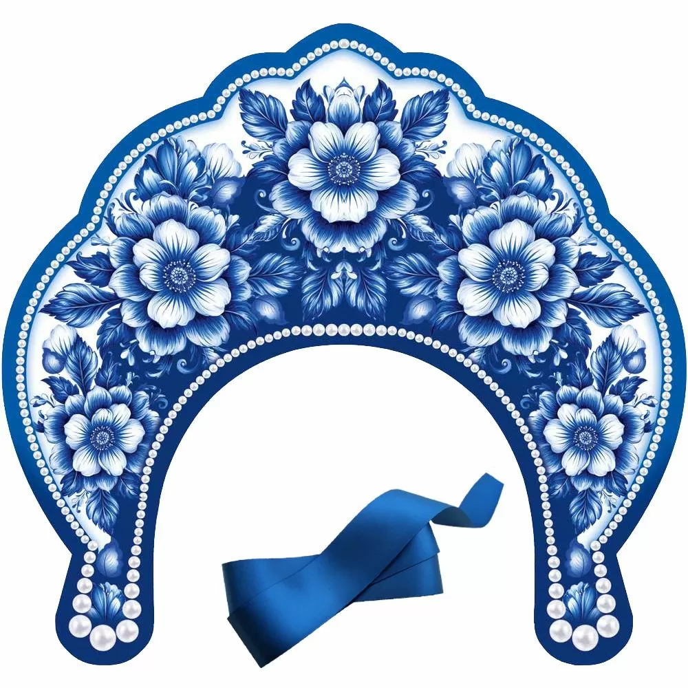 Картонный головной убор в виде кокошника формата А2 предназначен для оформления тематических мероприятий, народных праздников, утренников, фотосессий и анимационных программ. Изделие выполнено из плотного картона, что обеспечивает стабильную форму при ношении и устойчивость к множественным надеваниям и снятиям в условиях интенсивной эксплуатации на массовых мероприятиях. Поверхность украшена детализированным орнаментом в традиционной гжельской стилистике с крупными цветочными элементами и имитацией жемчужного обрамления по контуру, что делает кокошник визуально заметным на сцене, в зале и на фотографиях. Формат А2 позволяет использовать изделие как для взрослых, так и для старших детей, при необходимости допускается индивидуальная подгонка по размеру за счёт крепёжных элементов и сгибов основы. Для оптового покупателя важно, что картонный материал удобен при складском хранении: кокошники поставляются в плоском виде, не требуют сложных условий транспортировки, не деформируются при аккуратной укладке стопами, занимают минимум объёма и могут перевозиться крупными партиями. Печать устойчива к выцветанию при стандартном освещении помещений, рисунок не осыпается и не стирается при аккуратном обращении, что позволяет использовать изделие повторно в рамках сезонных программ. Кокошник подходит для театральных и концертных коллективов, детских садов, школ, домов культуры, а также для розничных покупателей, которым требуется быстрое и бюджетное решение для создания народного образа без индивидуального пошива. В упаковке 10, что удобно для комплектования групповых костюмов, формирования тематических наборов в торговой сети и планирования расхода на серию мероприятий.