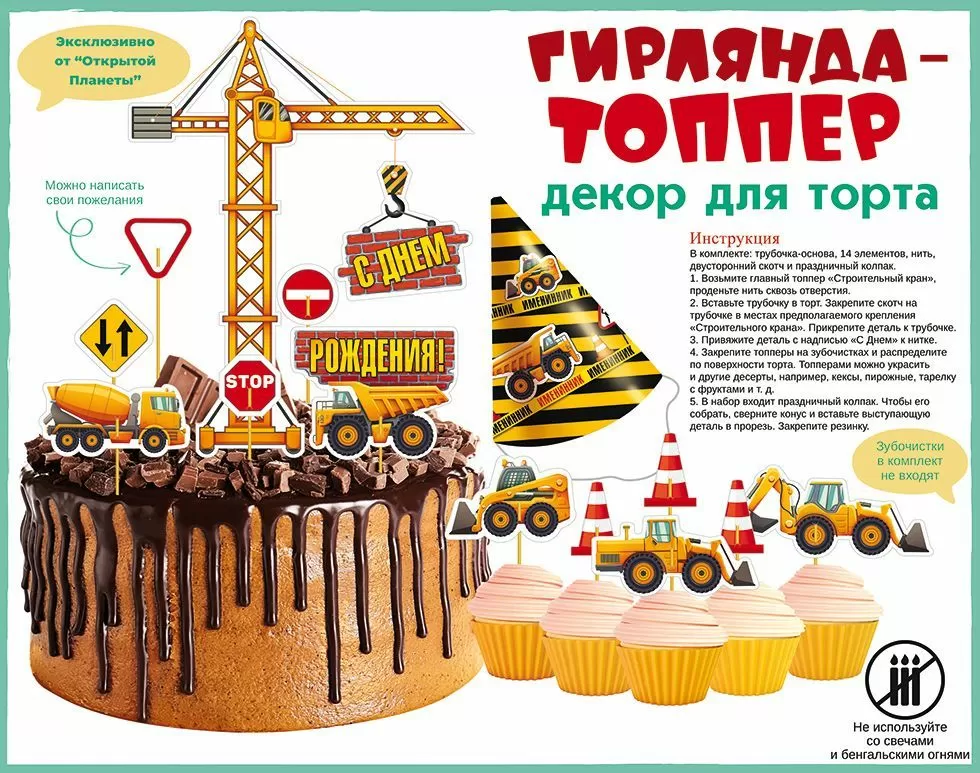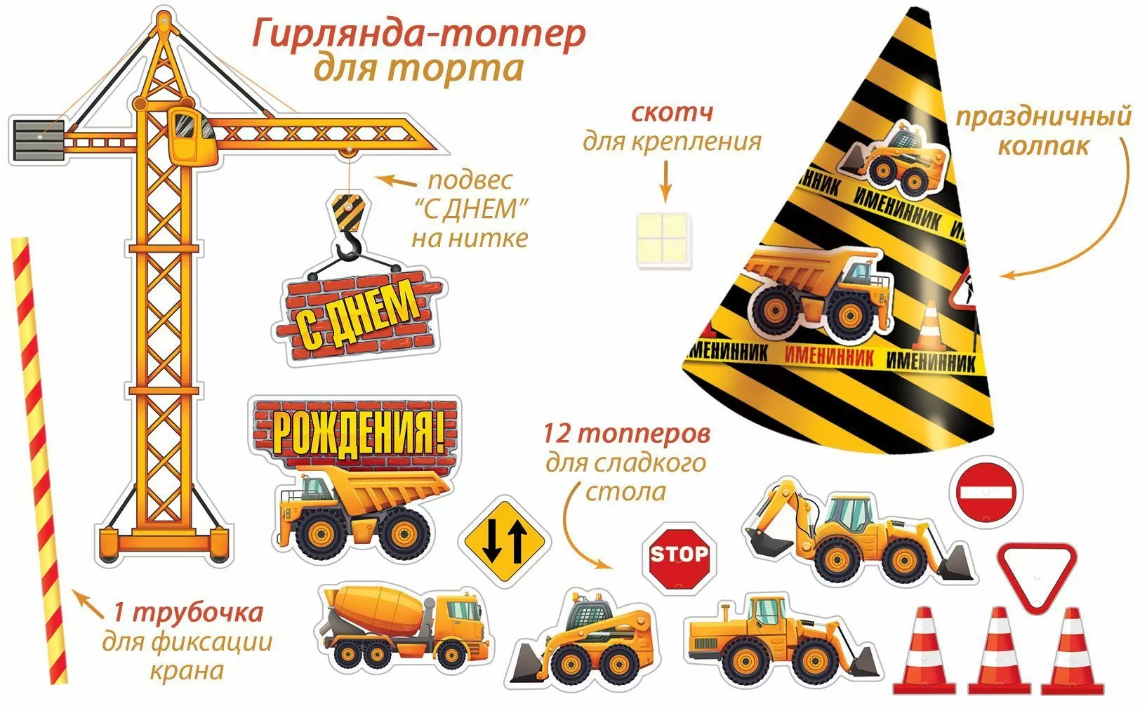 Мини-гирлянда топпер «С Днем рождения!» Машинки