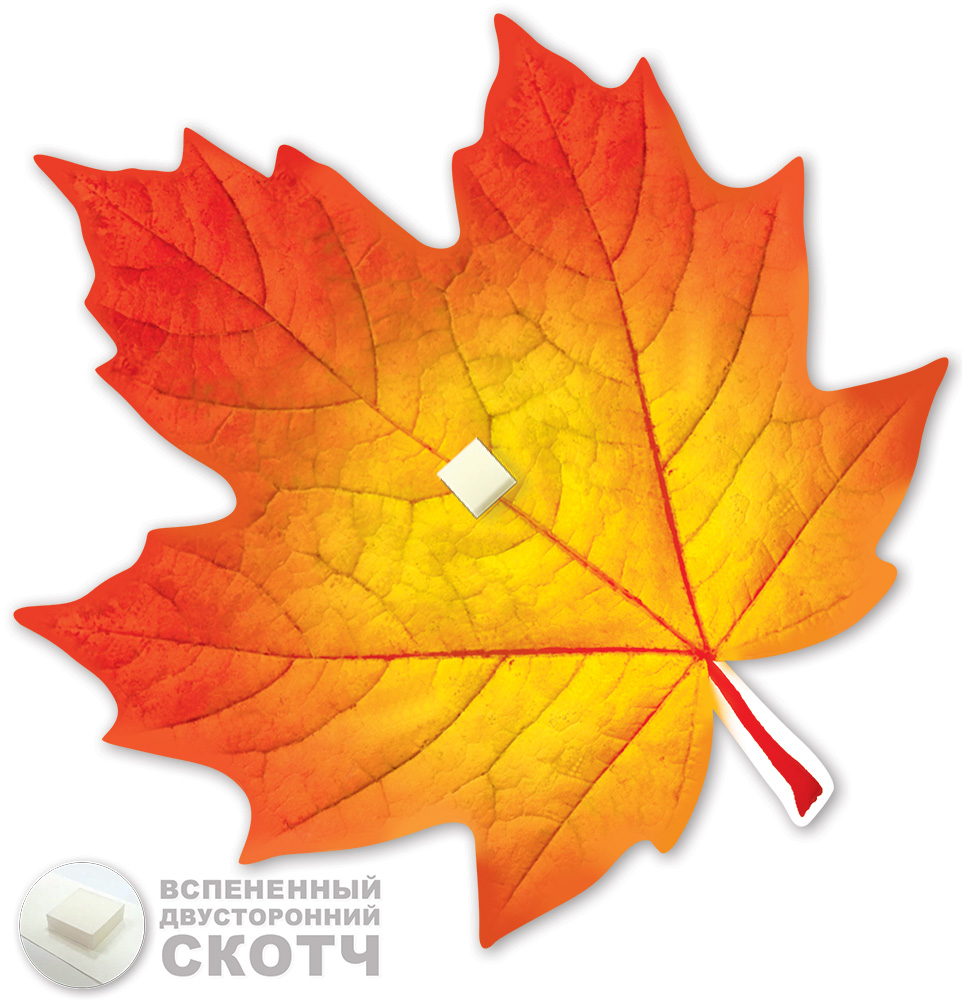 Украшение на скотче формата А6 выполнено из плотного картона с фигурной вырубкой в форме кленового листа. Готовое изделие имеет размер 146×146 мм, что удобно для комбинирования с другими элементами оформления витрин, залов и стендов без перегрузки пространства. Двустороннее полноцветное изображение обеспечивает одинаково аккуратный вид как с лицевой, так и с тыльной стороны, что важно при размещении на стеклянных перегородках, окнах и подвесных конструкциях. Поверхность дополнительно обработана глянцевым УФ-лаком, за счет чего картон получает повышенную устойчивость к истиранию, выцветанию и кратковременному воздействию влаги, сохраняя четкость рисунка при интенсивной сезонной эксплуатации. Конструктив с уже приклеенным скотчем позволяет отказаться от дополнительных крепежных материалов и ускоряет монтаж при массовом оформлении: изделие сразу готово к наклеиванию на гладкие, чистые и сухие поверхности. Отсутствие текста делает украшение универсальным для использования в образовательных учреждениях, магазинах, офисах, кафе и при оформлении частных интерьеров, в том числе для осенних витрин, тематических уроков, фотозон и праздничного декора. Небольшая толщина картона и плоская форма способствуют рациональной укладке при транспортировке и хранении, изделия не занимают много места и могут храниться до следующего сезона без потери потребительских свойств. В упаковке 20 изделий, что удобно для оптовых закупок и равномерного распределения по торговым залам, кабинетам и точкам выкладки, а также позволяет формировать наборы для розничной продажи или использования в домашних условиях.