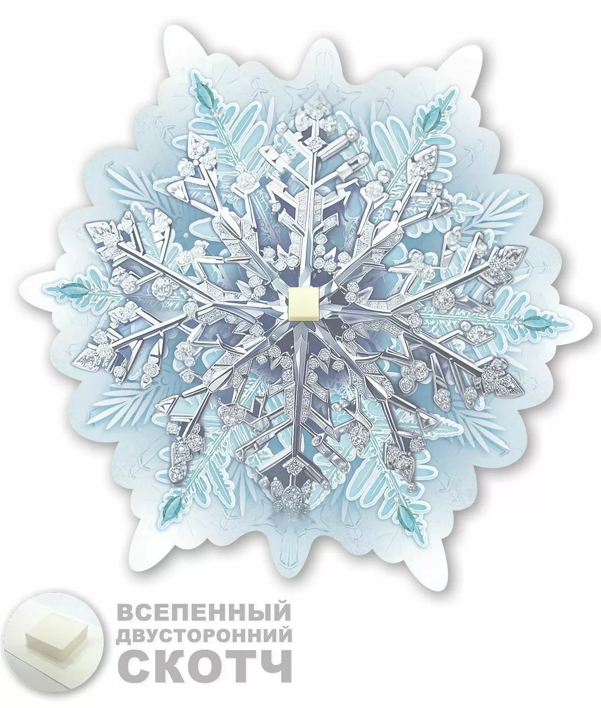 Украшения на скотче из плотного картона станут отличным оформлением вашего интерьера. На обороте приклеен двусторонний скотч, с помощью которого легко можно крепить снежинку к любой поверхности.
