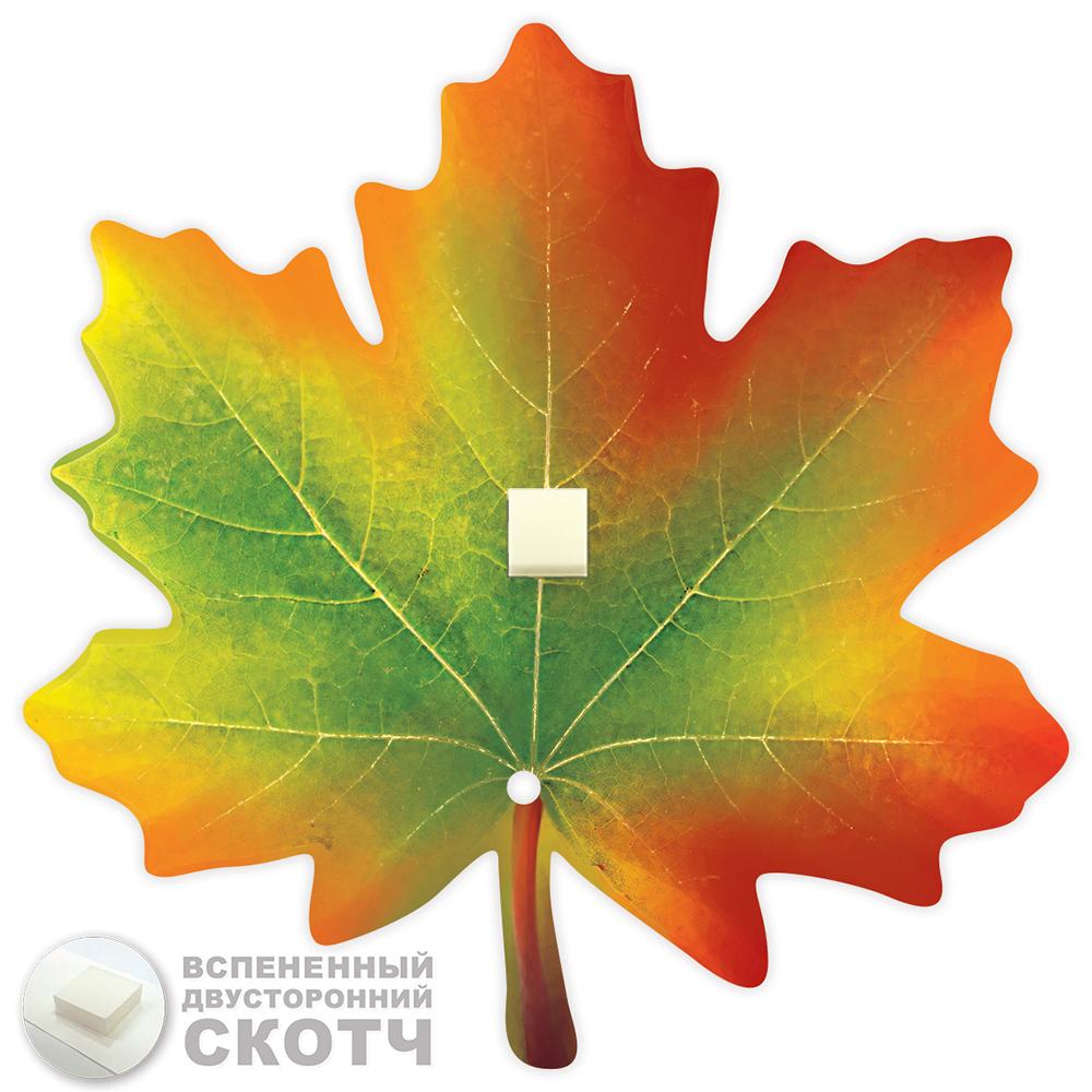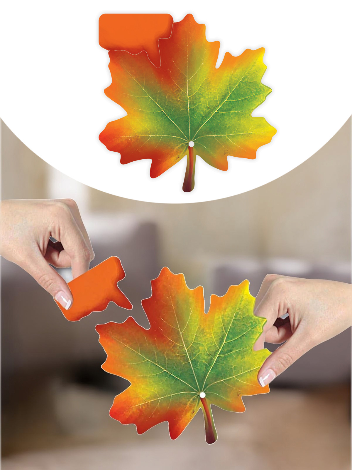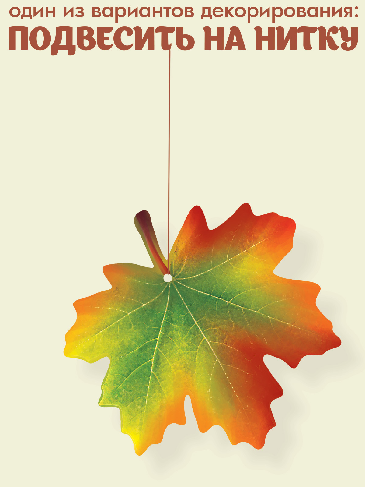 Украшение на скотче формата А7 представляет собой фигурный картонный элемент в виде кленового листа с двусторонним полноцветным изображением осеннего градиента от зелёного к жёлто-оранжевому. Изделие выполнено из плотного картона, обеспечивающего стабильную форму при вертикальном и горизонтальном размещении, что важно при оформлении витрин, залов, учебных аудиторий и торговых пространств. Фигурная вырубка повторяет контур листа с чёткой прорисовкой зубчиков и прожилок, что придаёт декору аккуратный, завершённый вид и позволяет комбинировать его с другими элементами сезонного ассортимента. Размер готового изделия 96×96 мм обеспечивает удобство использования как отдельного акцента, так и в составе композиции из нескольких украшений. На поверхность нанесена глянцевая УФ-лакировка, повышающая стойкость к истиранию, загрязнениям и выцветанию при длительной эксплуатации в помещениях с искусственным и естественным освещением; покрытие облегчает сухую чистку и защищает печать от механических повреждений при многократном перемещении. Конструктив с уже приклеенным двусторонним скотчем сокращает время монтажа при массовом оформлении: элемент можно сразу фиксировать на гладких поверхностях (двери, шкафы, витринное стекло, панели, стенды, декоративные экраны) без дополнительных расходных материалов и инструмента. Отсутствие внутреннего текста делает украшение универсальным: оно подходит для школьных и дошкольных учреждений, офисов, торговых залов, кафе, студий декора и домашнего использования, легко интегрируется в тематические осенние, праздничные и учебные композиции, не ограничивая сферу применения конкретной надписью. Двустороннее изображение позволяет размещать элемент в подвесных инсталляциях, на стеклянных перегородках и витринах, где декор просматривается с обеих сторон, что особенно актуально для оптовых закупок при оформлении больших площадей. Компактный размер и плоская форма удобны для хранения и транспортировки крупными партиями, минимизируют риск деформации и упрощают учёт на складе. В упаковке 20.