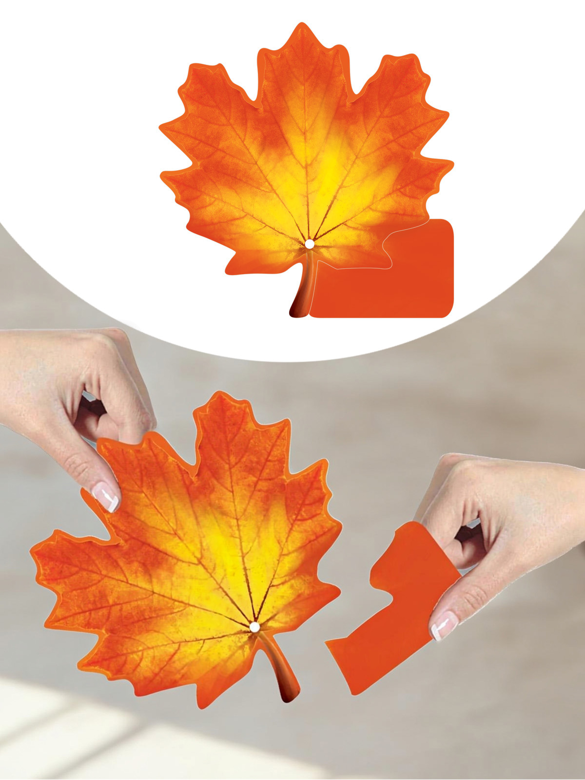 Украшение на скотче формата А7 выполнено в виде фигурной вырубки кленового листа с реалистичной осенней окраской в жёлто-оранжевой гамме. Изделие изготовлено из плотного картона, что обеспечивает стабильную геометрию при вертикальном размещении и позволяет использовать украшение многократно при аккуратной эксплуатации. Двустороннее изображение даёт одинаково аккуратный вид с обеих сторон, что удобно при оформлении витрин, стеклянных перегородок и подвесных композиций в торговых залах, офисах, учебных и досуговых учреждениях. Поверхность украшения имеет глянцевую отделку с применением УФ-лака, за счёт чего изображение устойчиво к выцветанию при искусственном освещении, менее подвержено истиранию и легко очищается от пыли сухой салфеткой. Конструктив с приклеенным скотчем позволяет быстро монтировать изделие на гладкие поверхности без дополнительных материалов и инструмента, что сокращает время оформления при серийной выкладке и сезонной смене декора. Размер готового изделия 96 × 96 мм обеспечивает хорошую читаемость формы на расстоянии и в то же время удобен для комбинирования с другими элементами декора в витринных и настенных композициях. Отсутствие текста внутри делает украшение универсальным для использования в разных сценариях: осеннее оформление магазинов, кафе, школ и детских садов, тематические фотозоны, декор к праздникам урожая и Дню знаний. В упаковке 20 единиц, что удобно для оптовых закупок, планирования расхода по залам и филиалам, а также для розничных покупателей, создающих наборное оформление помещения. Компактный формат и плоская форма способствуют рациональному хранению и транспортировке как на складе, так и при пересылке.