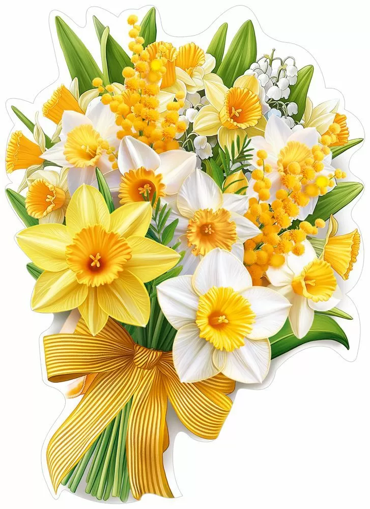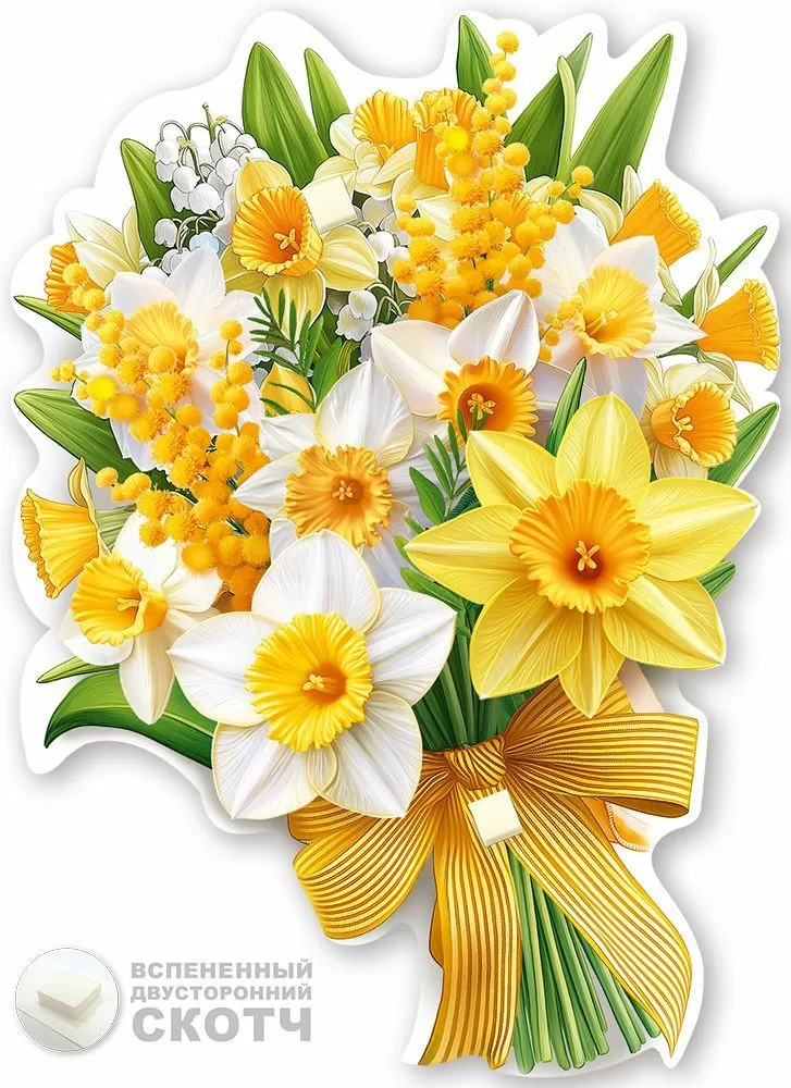 Украшение на скотче «Букет из нарциссов, мимозы и ландышей»