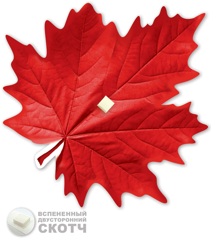 Украшение на скотче формата А6 выполнено из плотного картона с фигурной вырубкой в виде кленового листа насыщенного красного цвета. Изделие имеет двустороннее изображение: полноцветная печать с реалистичной прорисовкой прожилок и плавными цветовыми переходами обеспечивает одинаково аккуратный вид как со стороны помещения, так и с улицы или из другого сектора зала, что важно при оформлении витрин, торговых залов, холлов и зон ресепшен. Поверхность декора дополнительно обработана глянцевым УФ-лаком, что повышает стойкость печати к выцветанию, истиранию и кратковременному воздействию влаги, а также облегчает сухую чистку от пыли. Конструктив изделия предусматривает уже приклеенный скотч на оборотной стороне, поэтому украшение готово к монтажу без дополнительных расходников и инструмента: достаточно снять защитный слой и зафиксировать элемент на двери, стекле, витринном оборудовании, стенде, мебели или другой гладкой поверхности. Длина и ширина готового изделия составляют 146 × 146 мм, что позволяет использовать его как самостоятельный акцент в небольших пространствах или как модульный элемент в композициях из нескольких листьев. Отсутствие текста внутри делает украшение универсальным для применения в сезонном оформлении к осенним мероприятиям, акциям, тематическим выкладкам, в образовательных учреждениях и офисах. Формат и материал удобны для хранения и транспортировки крупными партиями: плоская форма и стабильная геометрия картона снижают риск деформации при складском хранении и пересортице. В упаковке 20 единиц, что позволяет оптимизировать закупку для сетевого и проектного оформления, а также использовать единый дизайн на нескольких площадках с сохранением визуальной целостности экспозиции.
