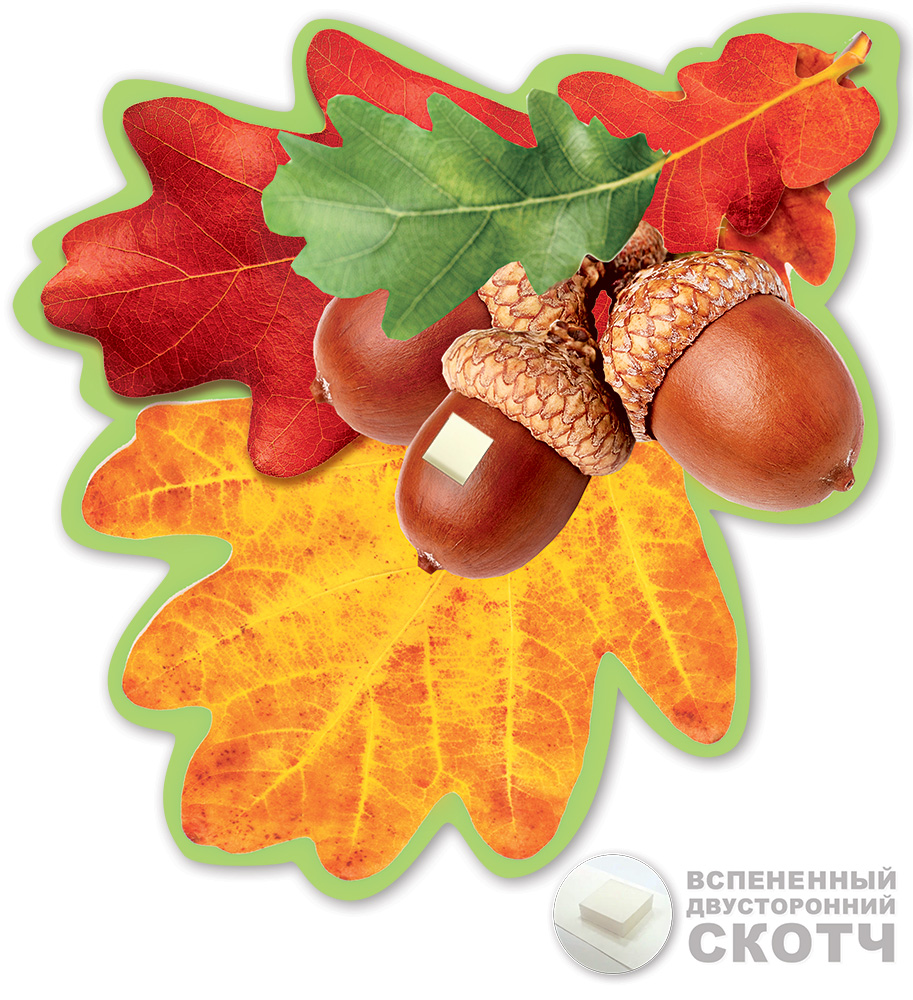 Украшение на скотче формата А6 представляет собой фигурную картонную заготовку с контурной вырубкой в виде осенних дубовых листьев и желудей. Размер готового изделия 146 × 146 мм обеспечивает хорошую читаемость изображения на расстоянии и позволяет использовать элемент как самостоятельный акцент в оформлении витрин, помещений, стендов и информационных зон. Материал основы – плотный картон, устойчивый к деформации при вертикальном размещении и кратковременных перепадах влажности в помещениях. Двустороннее полноцветное изображение с реалистичной проработкой деталей делает украшение удобным для размещения на стеклянных перегородках, дверях и окнах, где важна одинаковая визуальная привлекательность с обеих сторон. Конструктив с уже приклеенным скотчем сокращает время монтажа при массовом оформлении: элемент готов к использованию, не требует дополнительных клеевых материалов и может быстро фиксироваться на гладких поверхностях, таких как стекло, ламинированные панели, окрашенные стены, мебель. Глянцевый УФ-лак в отделке повышает износостойкость изображения, защищает от истирания и выгорания при интенсивной эксплуатации в учебных заведениях, торговых и офисных пространствах, а также упрощает сухую очистку от пыли. Отсутствие текста внутри делает украшение универсальным по тематике и языку, подходящим для сезонного осеннего декора, оформления мероприятий, тематических уроков, фотозон, витрин с сезонным ассортиментом. Компактный формат и одинаковые габариты элементов в партии удобны для хранения и транспортировки, что важно при оптовых поставках и планировании складских остатков. В упаковке 20 изделий, что позволяет использовать комплект как модуль для серийного оформления: элементы можно располагать по одному, группировать в композиции или комбинировать с другими украшениями аналогичного формата.