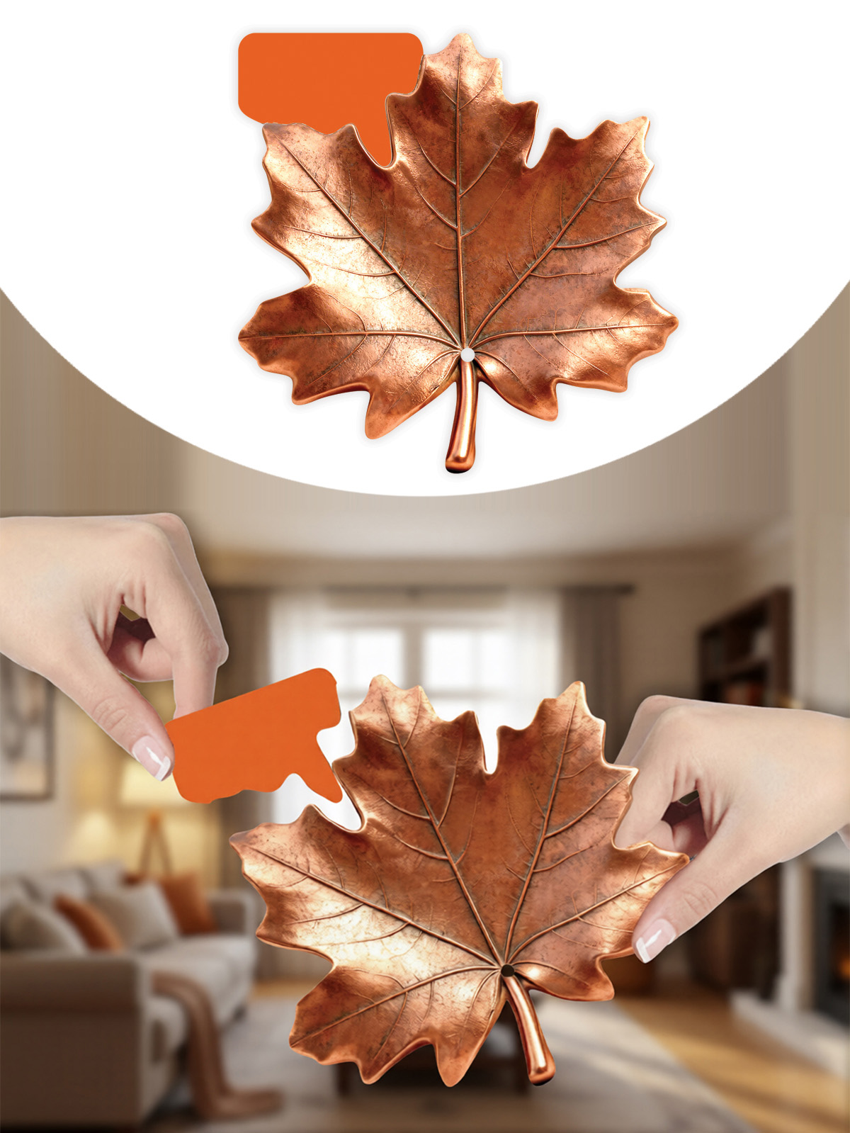 Украшение на скотче формата А7 представляет собой фигурный декоративный элемент из картона в виде кленового листа с реалистичной проработкой прожилок и однородной окраской в тёплом медно-оранжевом тоне. Изделие выполнено методом фигурной вырубки, что обеспечивает чёткий контур и стабильные размеры 96×96 мм без значимых отклонений по краю. Материал имеет достаточную жёсткость для сохранения формы при вертикальном размещении и одновременно остаётся лёгким, что снижает нагрузку на клеевой слой. Изображение двустороннее, поэтому украшение может использоваться в витринных композициях, подвесных инсталляциях и при оформлении помещений, где элемент просматривается с обеих сторон. Конструктив изделия предусматривает уже приклеенный скотч на оборотной стороне, что позволяет отказаться от дополнительных клеевых материалов, экономит время при массовом оформлении и уменьшает риск повреждения поверхностей. Клейкая основа подходит для временной фиксации на гладких основаниях типа ламинированных панелей, витринного стекла, дверей, мебельных фасадов; при аккуратном снятии изделие может быть повторно использовано в других композициях, если состояние скотча это позволяет. Отсутствие надписей делает украшение универсальным для различных сценариев: сезонное осеннее оформление торговых залов, кафе, офисов, учебных заведений, применение в наборах для декорирования витрин, фотозон и выставочных стендов, а также для домашнего декора, украшения дверей, окон и детских комнат. Нейтральная тематика не ограничена конкретным праздником и может включаться в ассортимент осенних или природных коллекций. В упаковке 10 однотипных элементов, что удобно для оптовых закупок, формирования серийных выкладок и поддержания единого стилевого решения на большой площади. Плоская форма и небольшие габариты способствуют компактному хранению на складе и упрощают транспортировку без необходимости в сложной защитной упаковке.