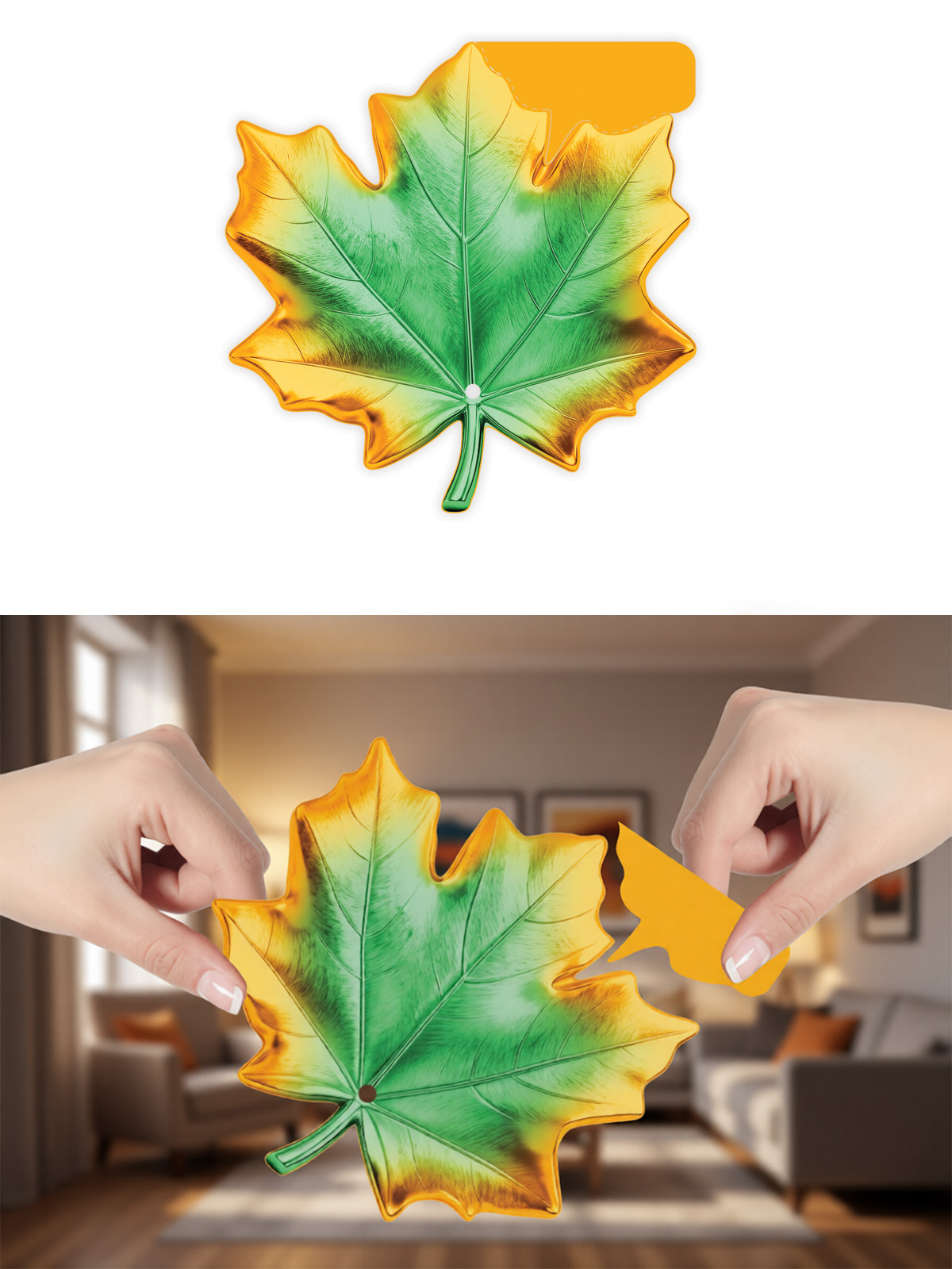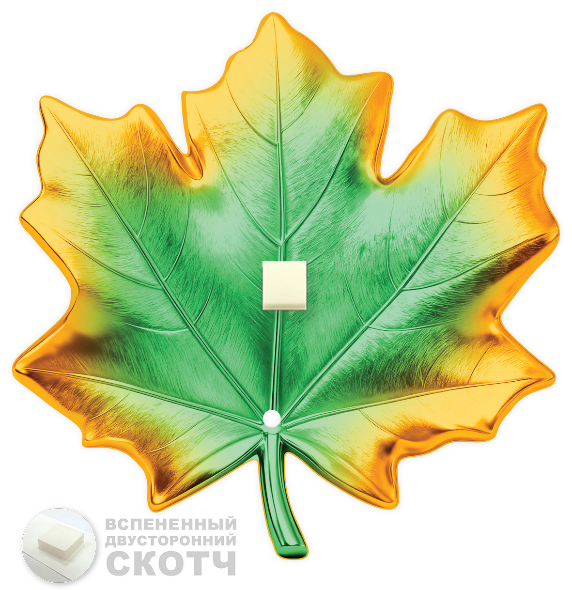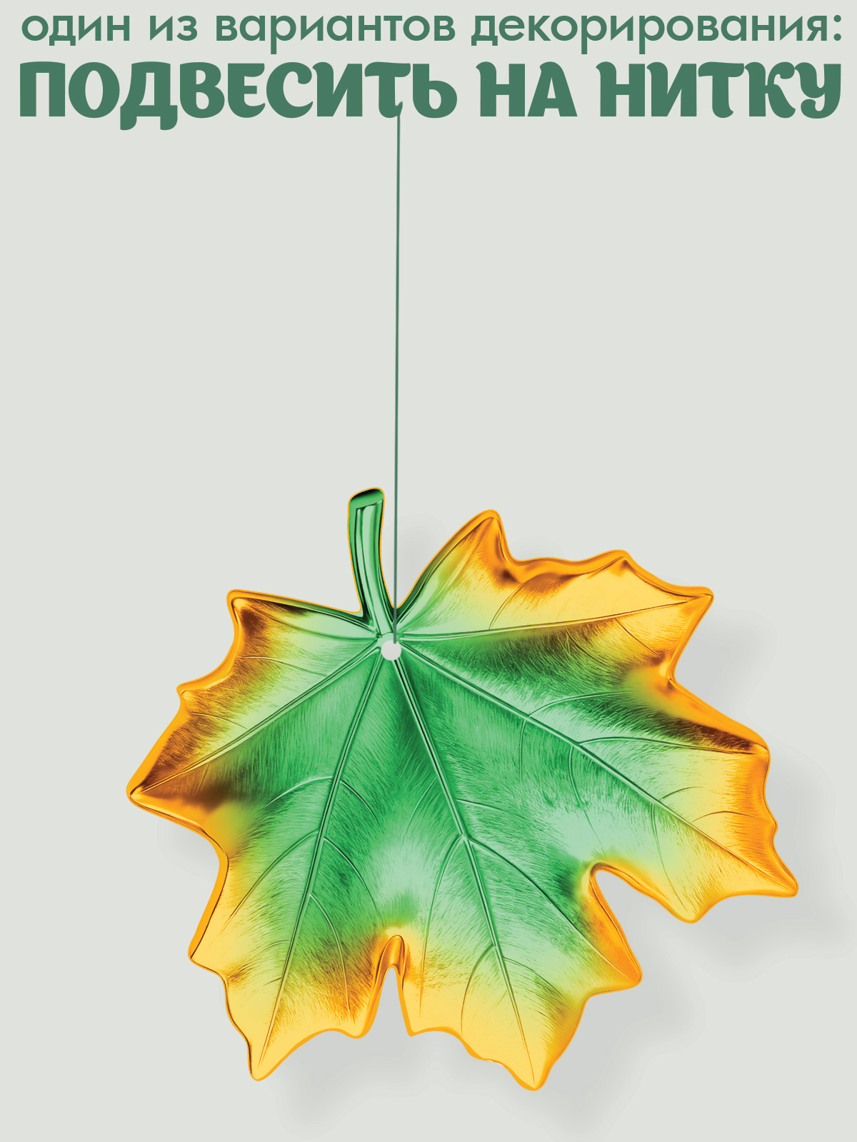 Украшение на скотче "Кленовый лист" (зелёный с жёлтой окантовкой)