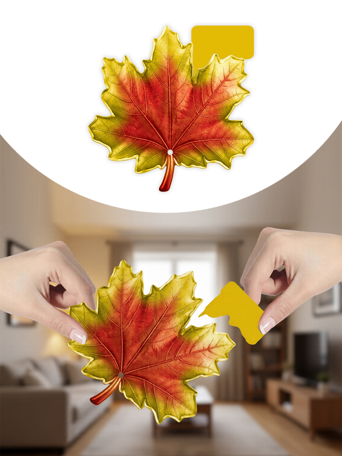 Украшение на скотче формата А7 представляет собой декоративный элемент из картона в виде кленового листа с фигурной вырубкой. Готовое изделие имеет длину 96 мм и ширину 96 мм, что удобно для точного расчета выкладки и планирования оформления витрин, залов и стендов. Конструкция снабжена уже приклеенным монтажным скотчем на оборотной стороне, что сокращает время установки и исключает необходимость в дополнительных крепежных материалах. Изображение нанесено с двух сторон, поэтому украшение одинаково корректно смотрится при размещении на стеклянных перегородках, дверях, окнах или подвесных конструкциях, а также при обзоре с разных направлений в проходных зонах. Материал основы — плотный картон, обеспечивающий стабильную форму листа и устойчивость к деформации при аккуратной эксплуатации в течение всего сезона оформления. Изделие поставляется в упаковке по 10 штук, что удобно для оптовых закупок и формирования набора для единообразного декора помещения. Отсутствие текстовых надписей делает украшение универсальным для использования в образовательных учреждениях, торговых залах, офисах, кафе и частных интерьерах, независимо от тематики мероприятия. Реалистичная цветовая гамма с плавным переходом от желтого к насыщенному красному визуально выделяется на светлых и темных фонах, подходит для осеннего оформления, сезонных акций, тематических фотозон, презентаций и стендов. Лист легко фиксируется на гладких чистых поверхностях, при необходимости может быть снят без повреждения самого изделия, что позволяет частично повторно использовать декор при аккуратном обращении. Компактный размер и плоская форма удобны для транспортировки и хранения: пачки занимают минимум места на складе и в торговом зале, сохраняют вид при стандартных условиях сухого помещения.
