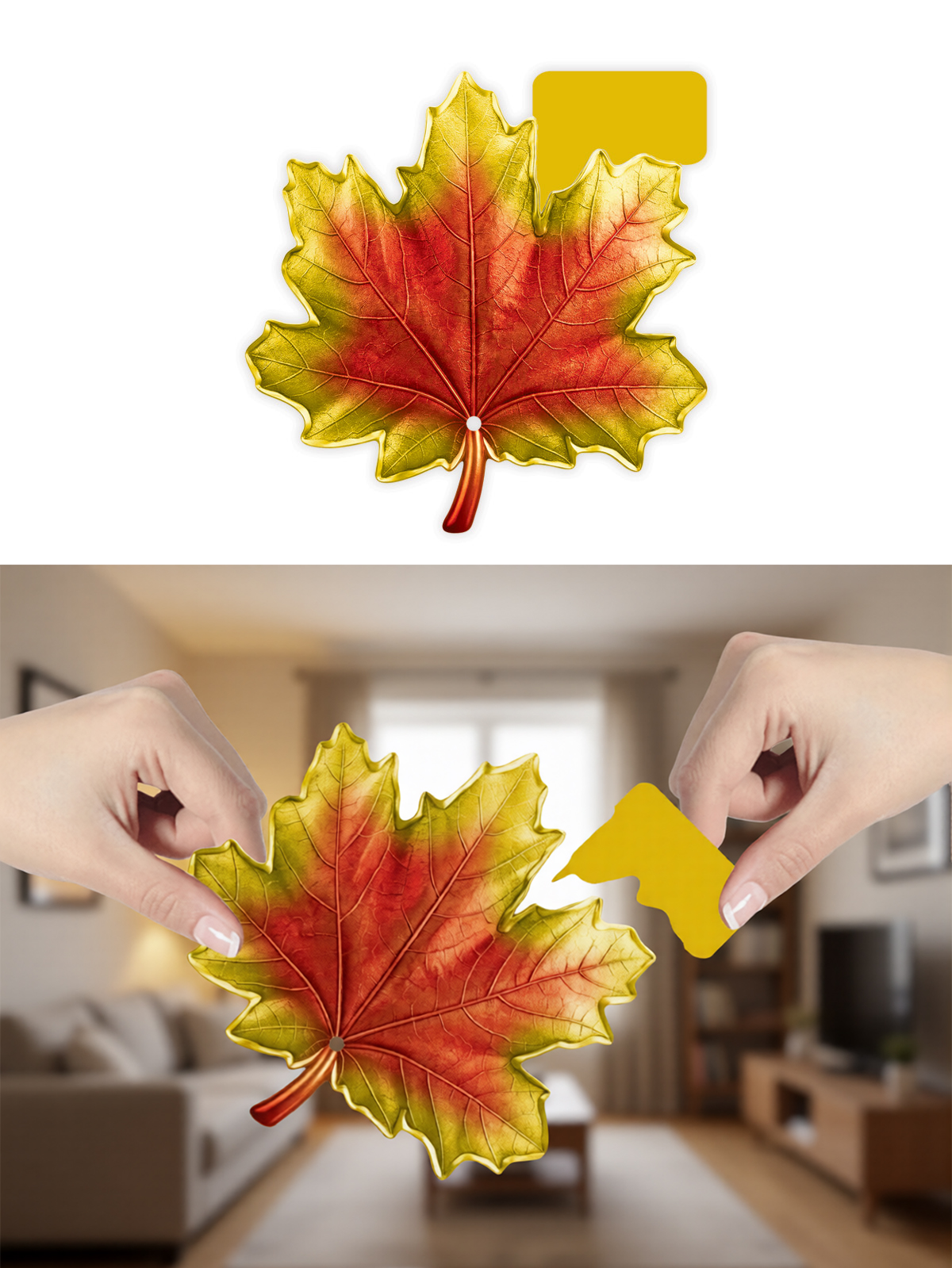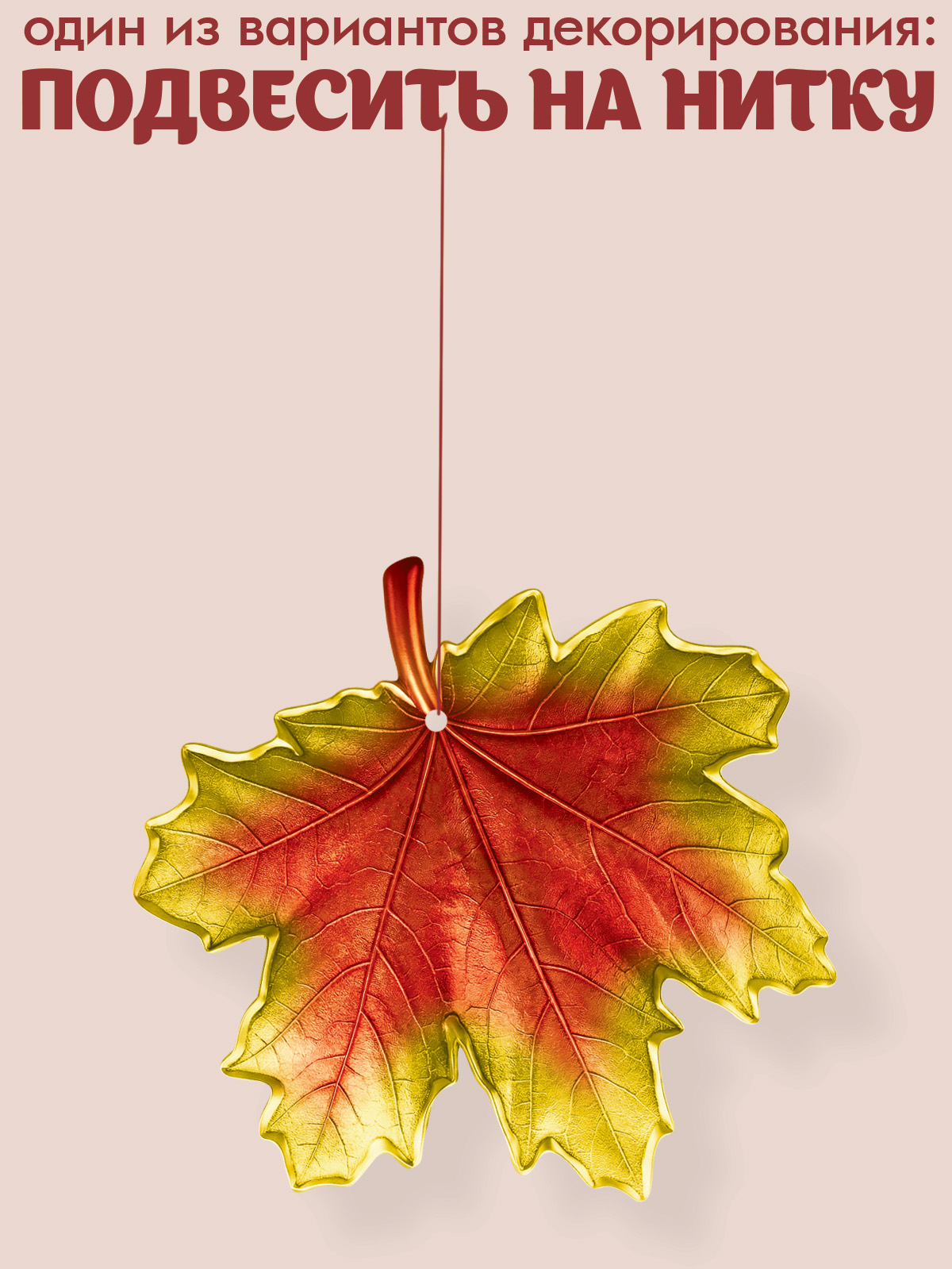 Украшение на скотче "Кленовый лист" (красный с жёлтой окантовкой)