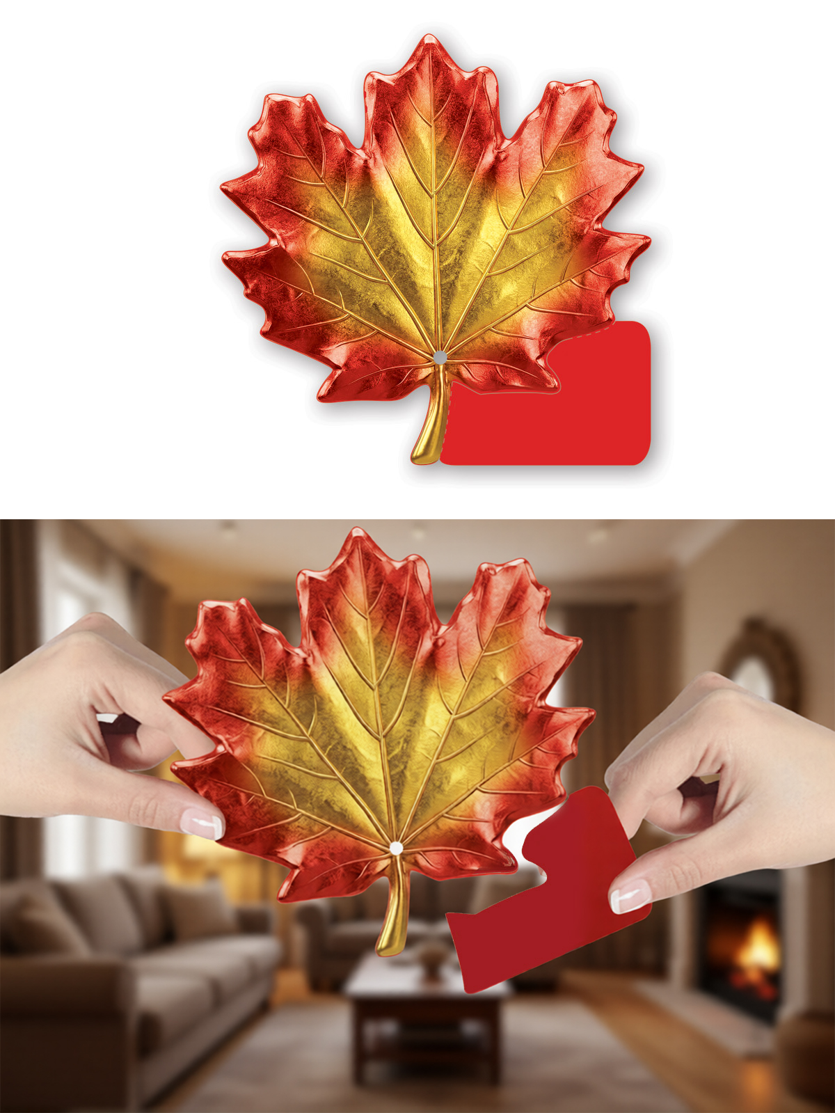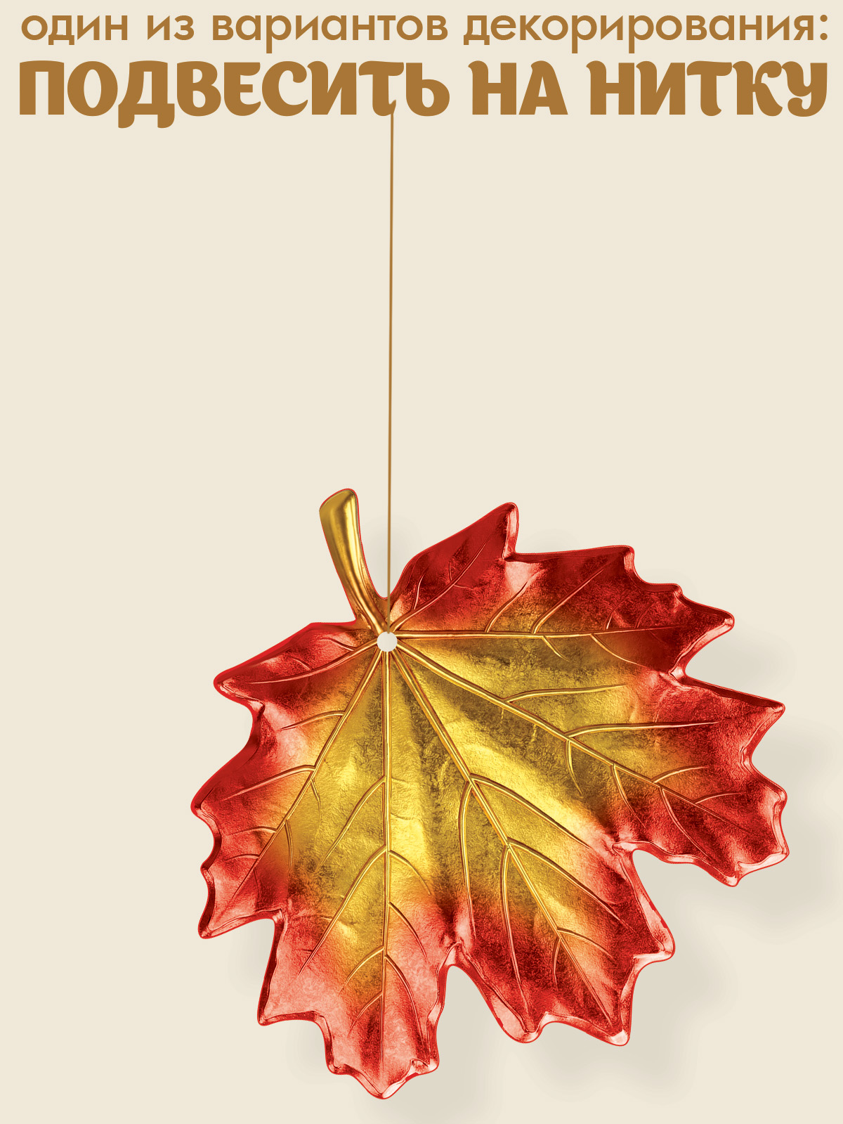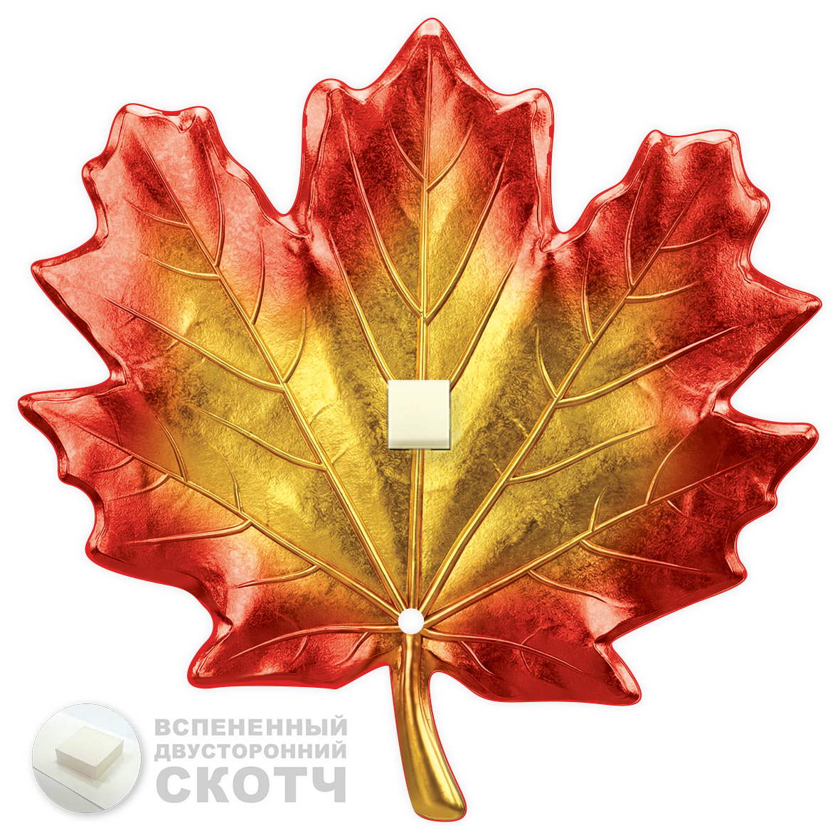 Украшение на скотче "Кленовый лист" (жёлтый с красной окантовкой)