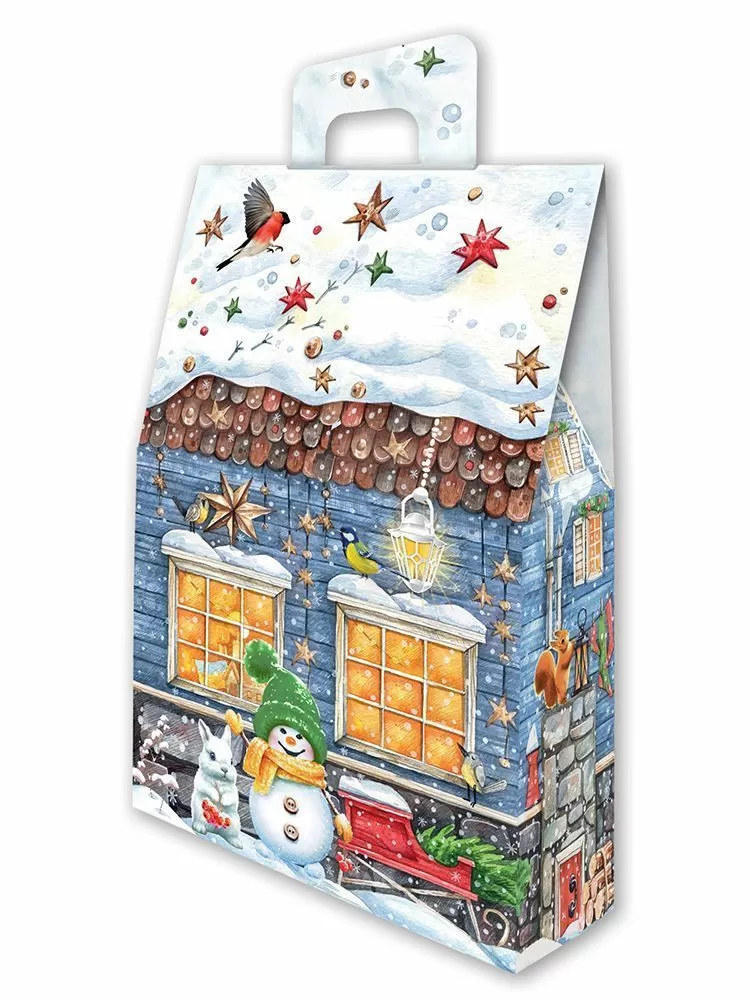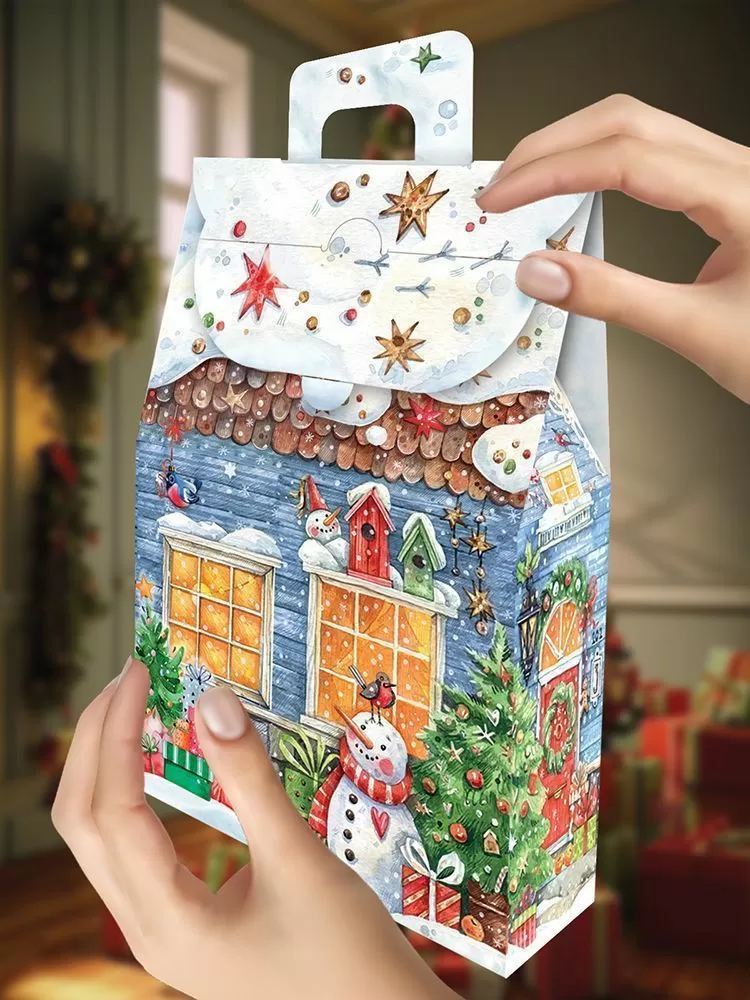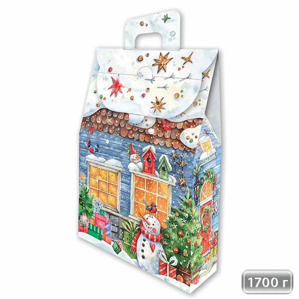 Новогодняя подарочная коробка для сладких подарков. Вместительность - 1700 грамм.