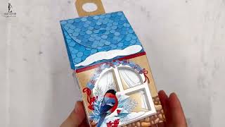 Важным достоинством изделия является авторский дизайн в новогодней тематике: сама коробка – это домик с голубой заснеженной крышей. Окна и двери украшены новогодними гирляндами из остролиста. Под дверью лежат подарочки, а на окне сидит красногрудый снегирь. Все изображения выдержаны в приятных нежных оттенках. На крыше домика расположена поздравительная надпись «Счастливого Нового Года». Оригинальность такого подарка сделает его замечательным памятным сувениром для получателя.