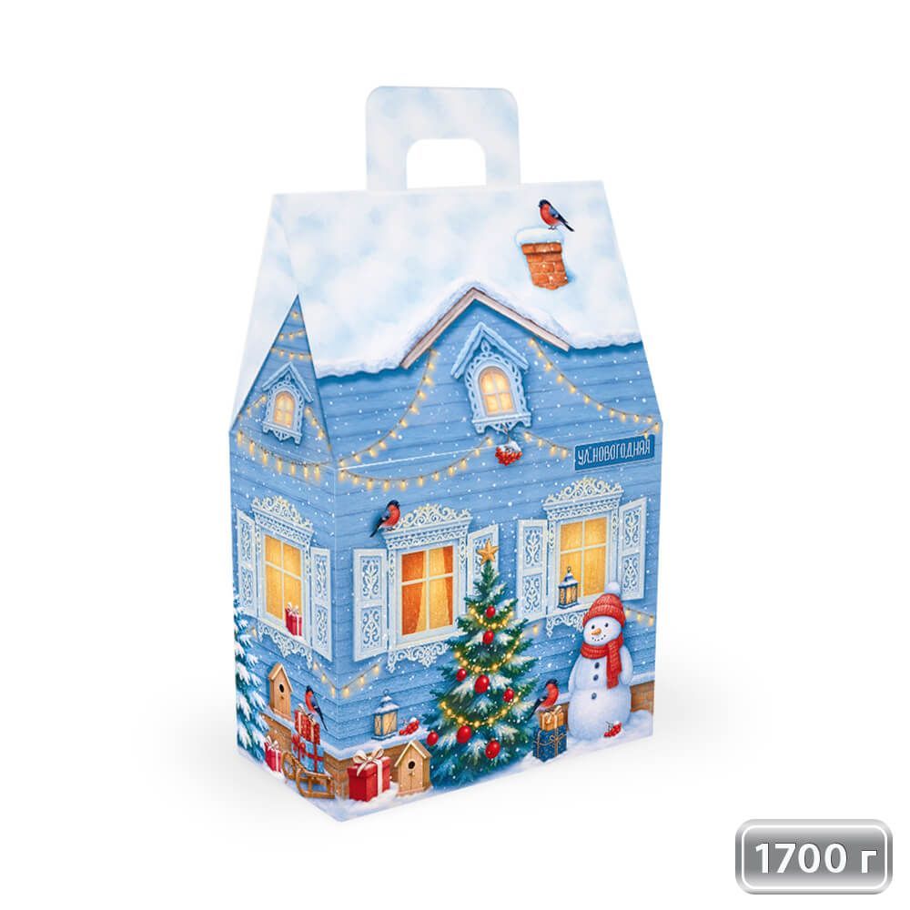 Картонная коробка формата А4 с фигурной вырубкой выполнена в виде домика с двускатной крышей и интегрированной ручкой для переноски, что упрощает транспортировку и выкладку при оптовых поставках. Готовое изделие имеет длину 320 и ширину 180, что позволяет ориентироваться на стандартные схемы паллетирования и стеллажного хранения, а также удобно размещать внутри фасованную пищевую продукцию, сувениры или наборы разнокалиберных товаров. Материал — плотный картон, обеспечивающий достаточную жесткость стенок и устойчивость формы при заполнении содержимым среднего веса, что важно при многократных перегрузках в логистической цепочке. Отделка без отделки упрощает переработку упаковки и снижает риск повреждения поверхности при трении, при этом внешняя сторона оформлена полноцветной печатью с зимней сюжетной композицией: фасад домика, заснеженная крыша, светящиеся окна, новогодняя ель и дополнительные декоративные элементы создают единый визуальный образ сезонной подарочной упаковки. Конструкция коробки предусматривает аккуратные сгибы и фиксирующие клапаны, что обеспечивает быстрый ручной сбор без применения клея и позволяет собирать большие партии непосредственно на складе или в торговой точке. Внутри коробка без текста и вспомогательной графики, поэтому подходит для комплектации продукцией разных брендов и для формирования индивидуальных наборов под частные заказы или корпоративные программы. Объем внутреннего пространства ориентировочно рассчитан под вес наполнения до 1700 г, что удобно для стандартных кондитерских ассортиментов и комбинированных подарков. Для розничного покупателя такая коробка может использоваться как готовая подарочная упаковка к Новому году и зимним праздникам, а после извлечения содержимого — как декоративный элемент интерьера или временное хранилище мелких вещей. Конструкция устойчива при вертикальной установке, что облегчает формирование витринных композиций и упорядоченное размещение на полке. В упаковке 5.