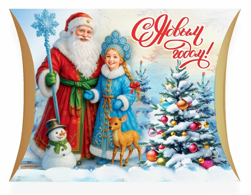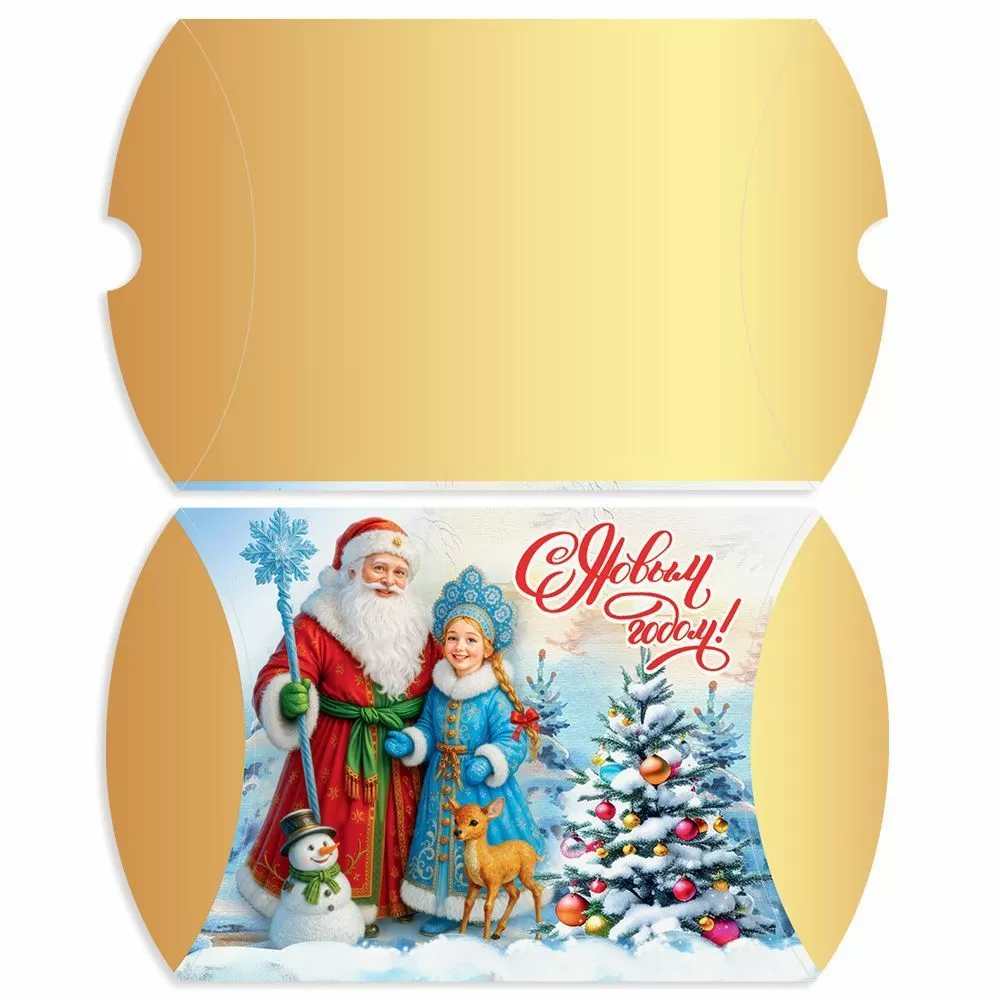 Коробочка-подушка – это идеальный способ красиво оформить подарок к Новому году и Рождеству. В нее можно положить конфеты или другие сладости, мини-игрушку, аксессуар, косметику, небольшой сувенир. Самосборная коробка с легкостью раскладывается и складывается, что дает возможность быстро и удобно упаковать подарок. Яркий оригинальный принт создает праздничное настроение. На коробке изображены Дед Мороз, Снегурочка и новогодняя елка. Универсальная новогодняя упаковка порадует и детей, и взрослых. Изготовлена из плотного картона. Размер изделия – 164х100 мм. В упаковке 10 шт.